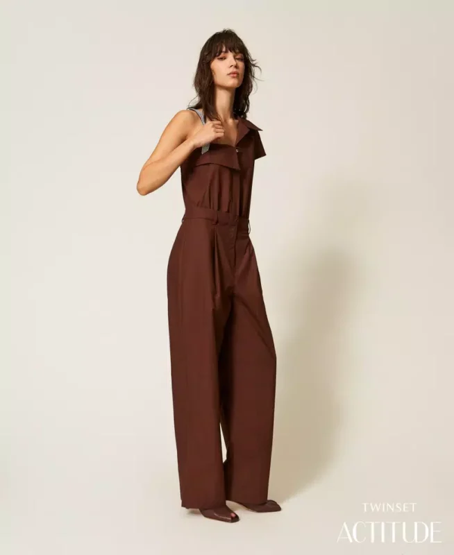 ACTITUDE Recycled poplin one shoulder jumpsuit Chocolate