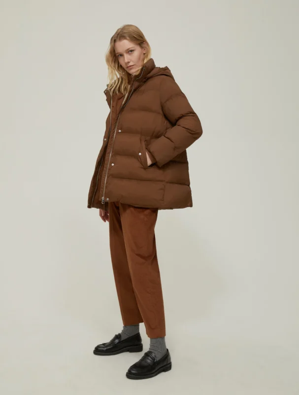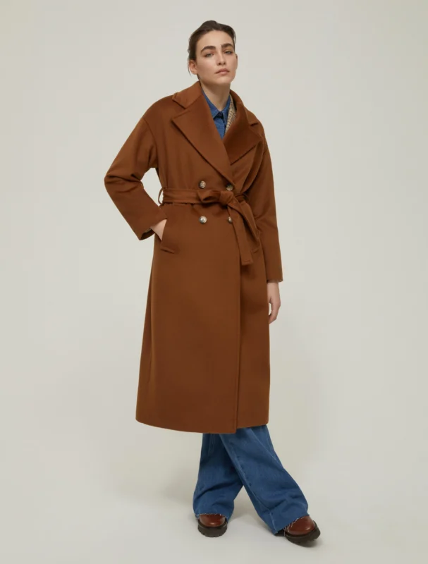 PENNY BLACK Double-breasted broadcloth coat Tobacco