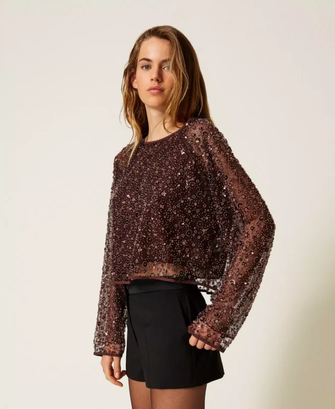 ACTITUDE Tulle blouse with sequins Hot Chocolate