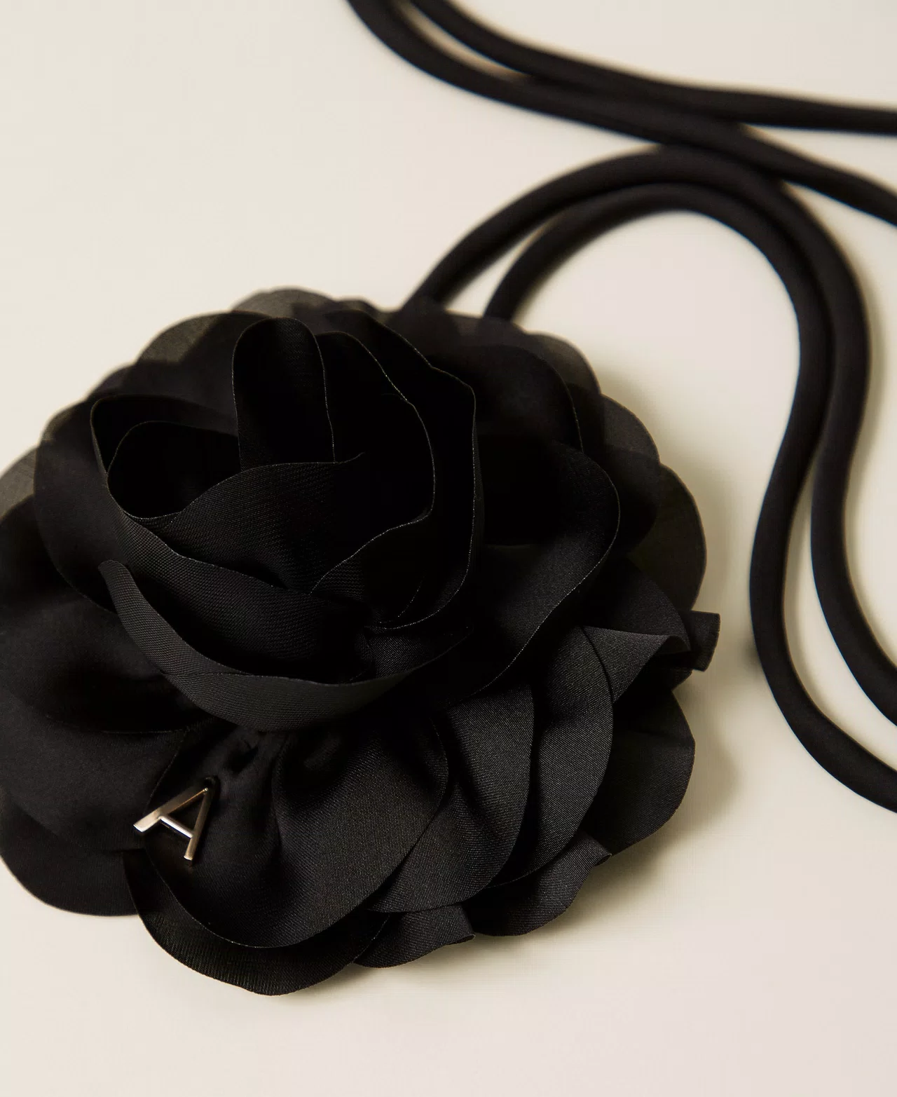 Κολιέ τσόκερ από τη συλλογή Actitude με ρυθμιζόμενο κορδόνι για δέσιμο στο λαιμό και λουλούδι από σατέν ύφασμα.