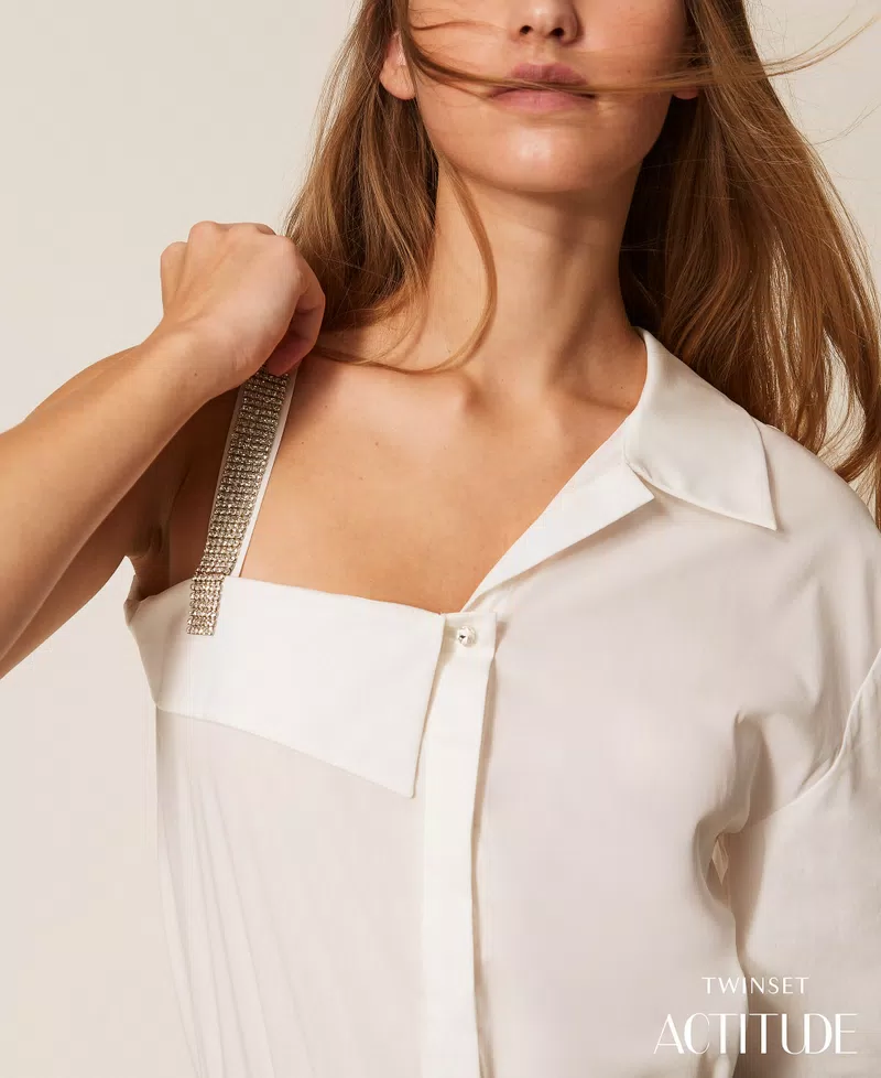 Πουκάμισο με ελαστικό βαμβακερό ποπλίνα με έναν ώμο από τη συλλογή Actitude.