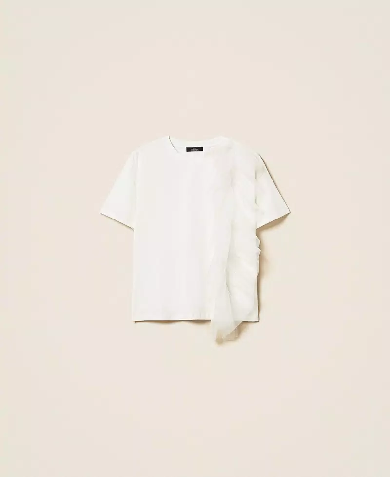 ACTITUDE Regular fit T-shirt with tulle Off white