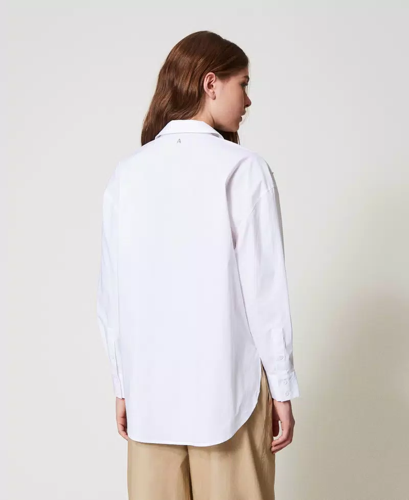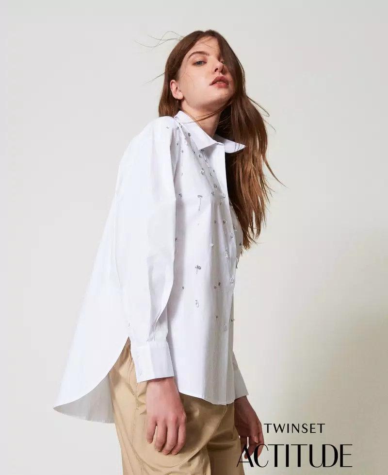 Πουκάμισο συλλογής Actitude από ελαστική βαμβακερή ποπλίνα με κεντημένα στο χέρι στεφάνια και χάντρες. Κλείσιμο με κουμπιά, μακριά μανίκια, στρογγυλεμένο στρίφωμα, ίσια εφαρμογή.
