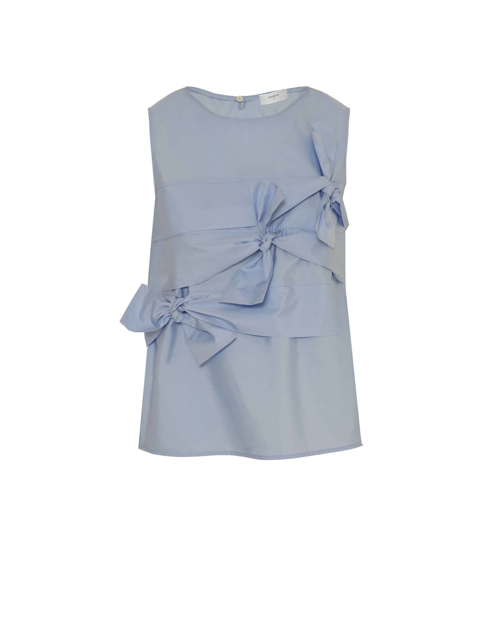 Μπλούζα από βαμβακερή ποπλίνα σε ίσια γραμμή, με τρεις μάξι διακοσμητικούς φιόγκους στο μπροστινό μέρος που προσθέτουν κίνηση και πρωτοτυπία.