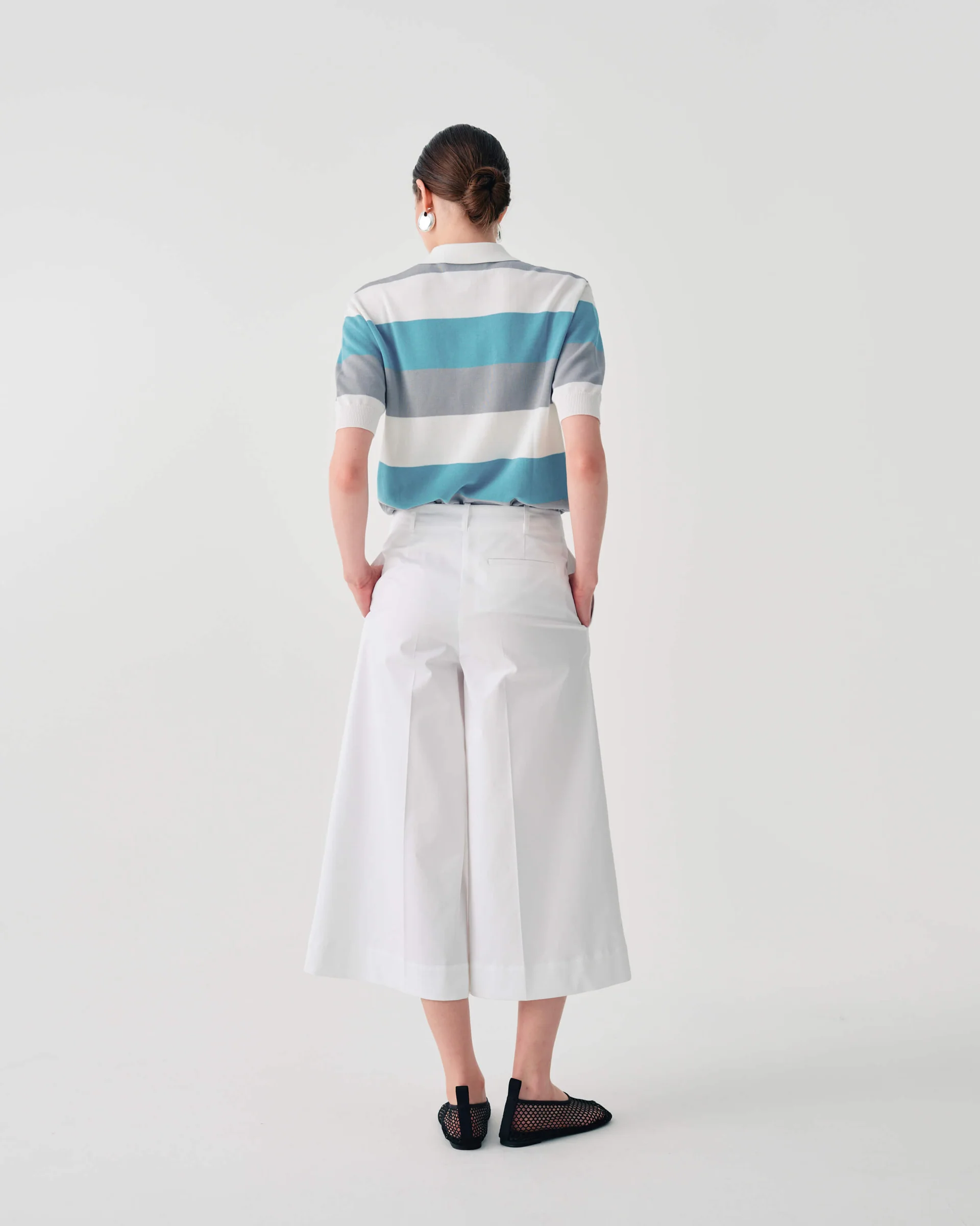 Παντελόνι με φαρδιά γραμμή, κανονική μέση, τσάκιση στο κέντρο και θηλιές ζώνης.