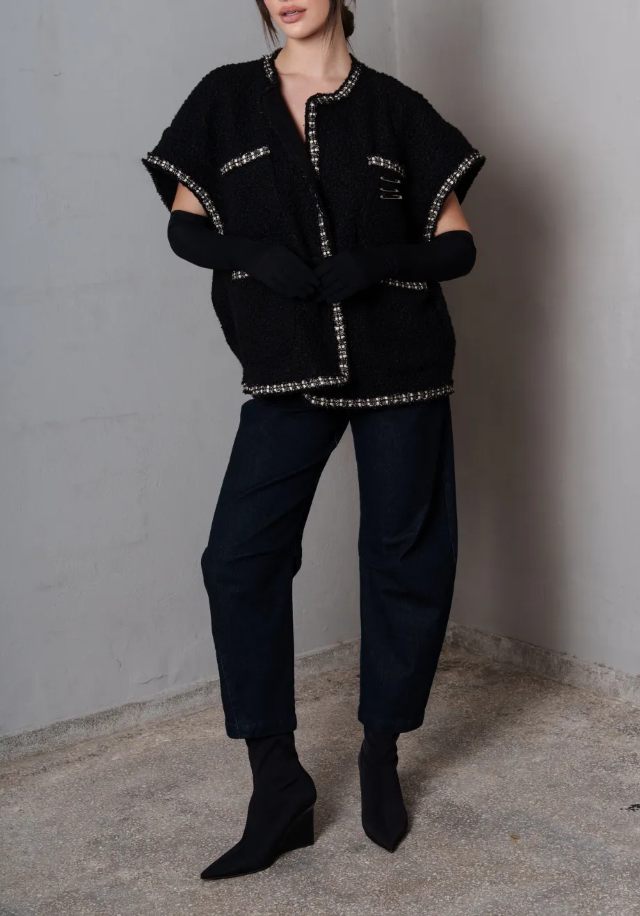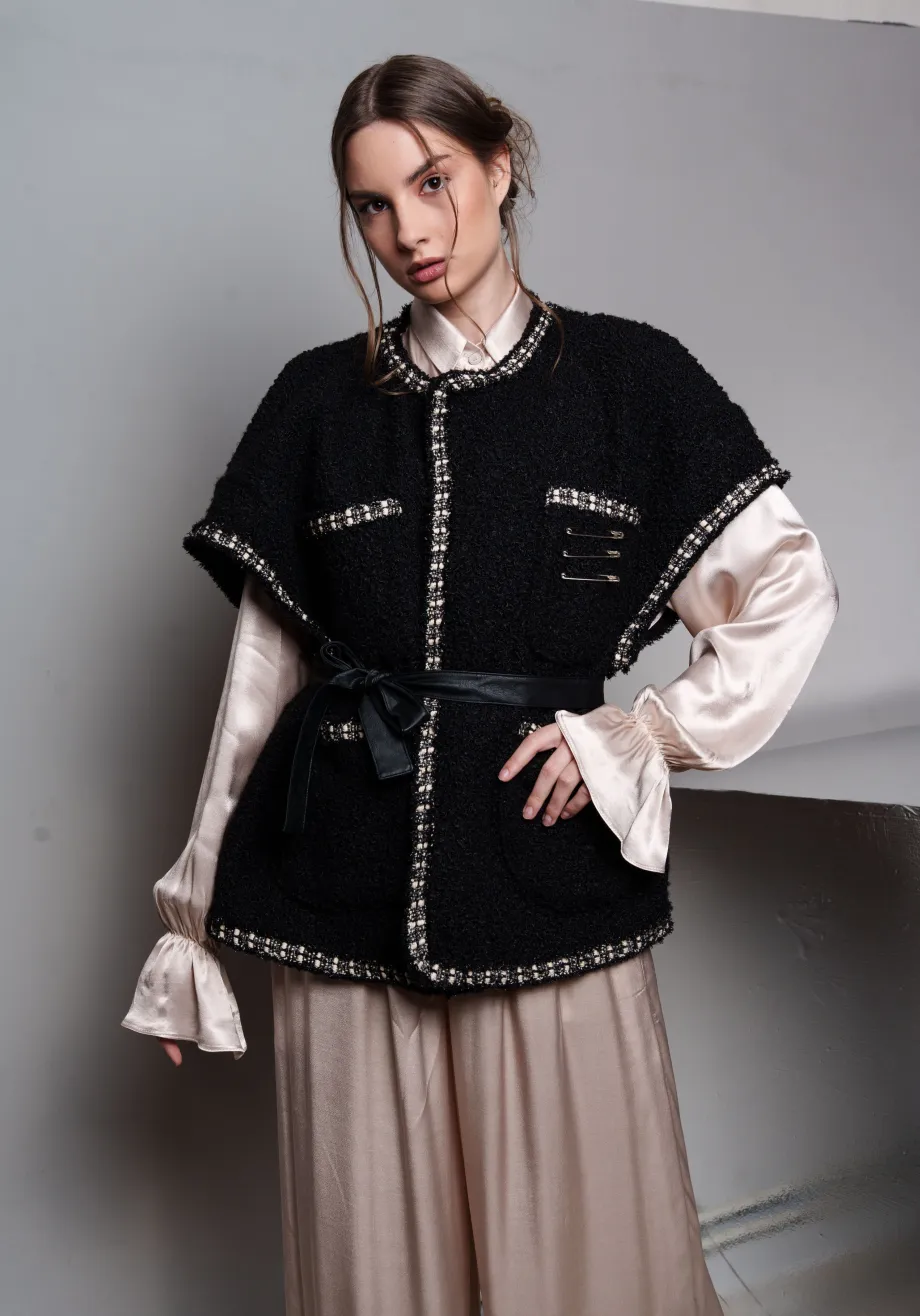 Αμάνικο μπουκλέ γιλέκο με tweed λεπτομέρειες