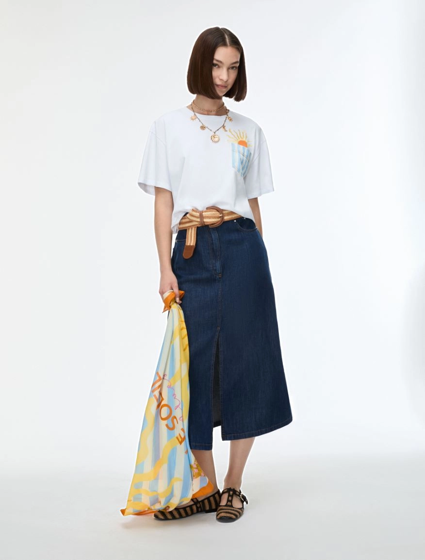 Μπλούζα από ύφασμα βαμβακερού ζέρσεϊ με στάμπα και κέντημα