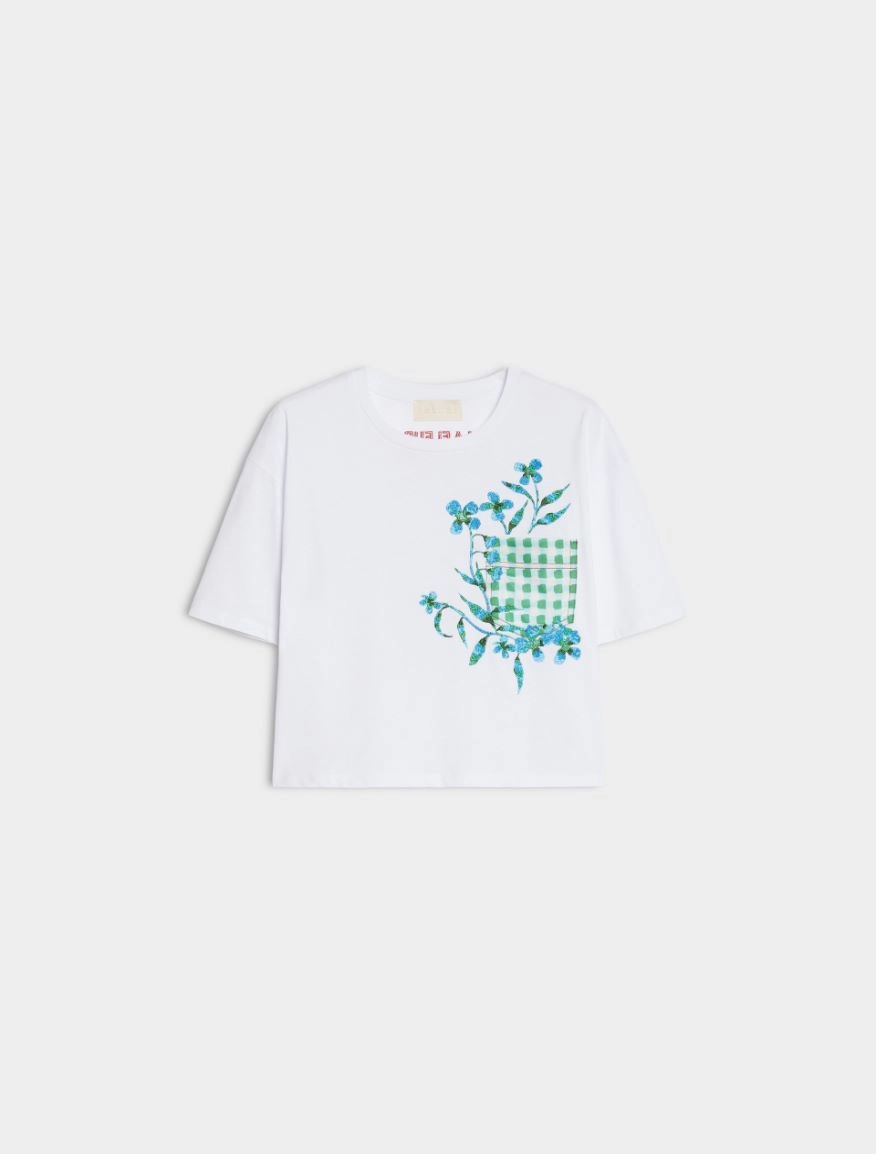 Μπλούζα από τυπωμένο και κεντημένο βαμβακερό ζέρσεϊ ύφασμα