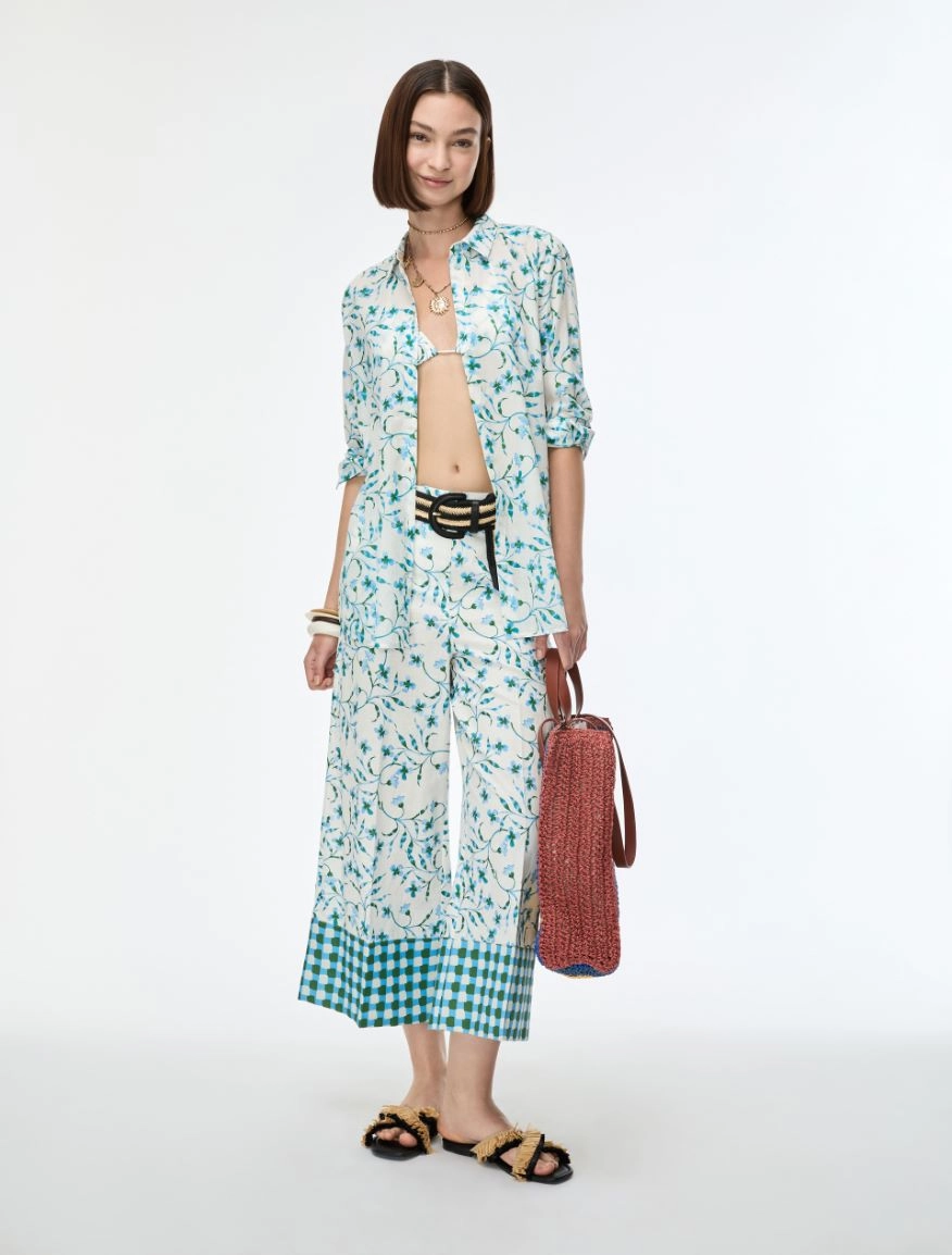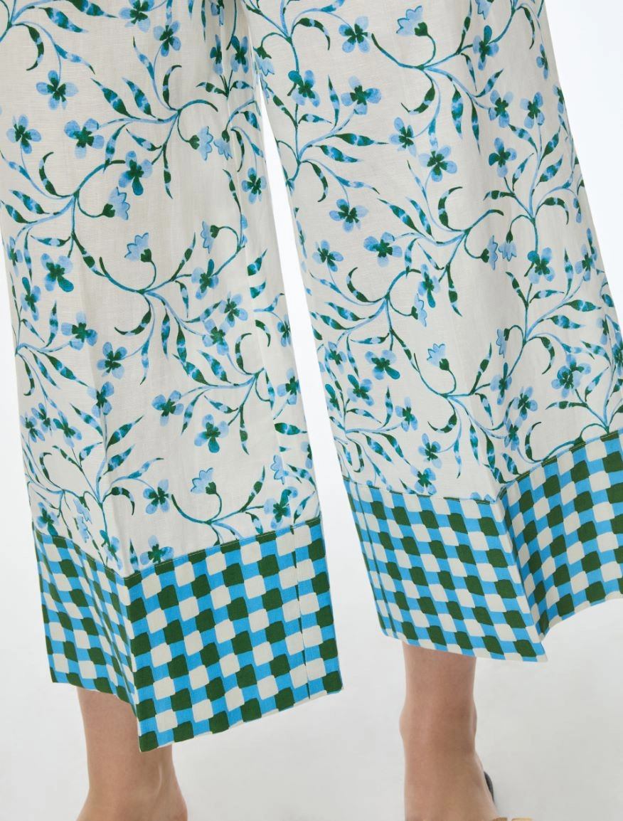 Εκτυπωμένο παντελόνι από λινό και βαμβάκι