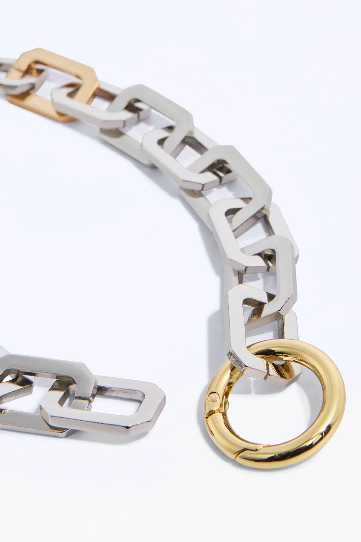 ΚΟΛΙΕ ΤΣΟΚΕΡ SIBEL ΑΠΟ ΑΣΗΜΙ ΜΕΤΑΛΛΟ, ΑΠΟΤΕΛΟΥΜΕΝΟ ΑΠΟ ΑΛΥΣΙΔΑ ΜΕ ΔΙΕΘΝΕΙΣ ΚΡΙΚΟΥΣ. ΤΟ ΚΟΥΜΠΩΜΑ, ΠΑΡΟΜΟΙΟ ΜΕ ΣΤΡΟΓΓΥΛΟ ΚΑΡΑΜΠΙΝΕΡ, ΕΙΝΑΙ ΧΡΥΣΟ ΚΑΙ ΒΡΙΣΚΕΤΑΙ ΣΤΟ ΠΙΣΩ ΜΕΡΟΣ.