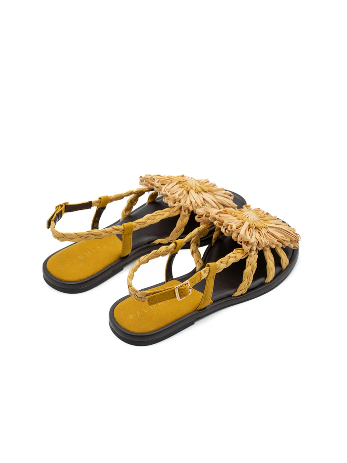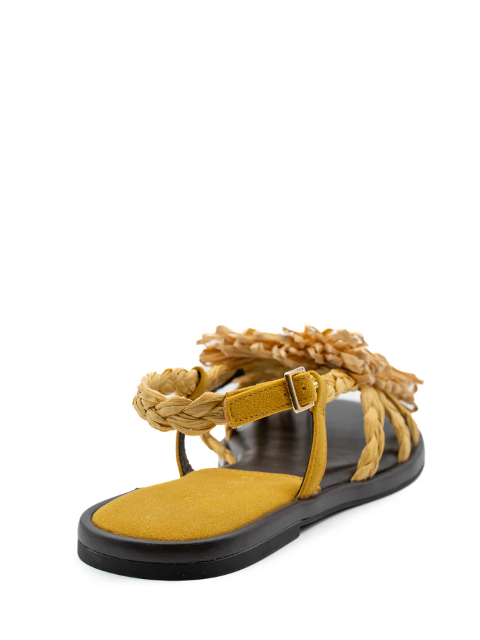 Φλατ σανδάλι από 100% ράφια με φλοράλ διακόσμηση στο μπροστινό μέρος σε δύο τόνους