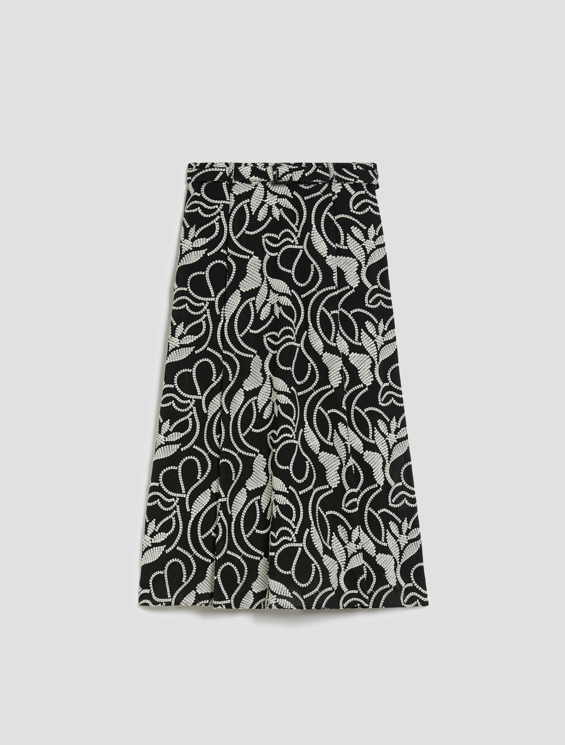 Με εξαιρετική φυσική φρεσκάδα, αυτή η μίντι φούστα με bon chic σιλουέτα είναι εξ ολοκλήρου κεντημένη με γραφικά φυλλώματα. Για καλοκαιρινές εμφανίσεις υψηλού στυλ.