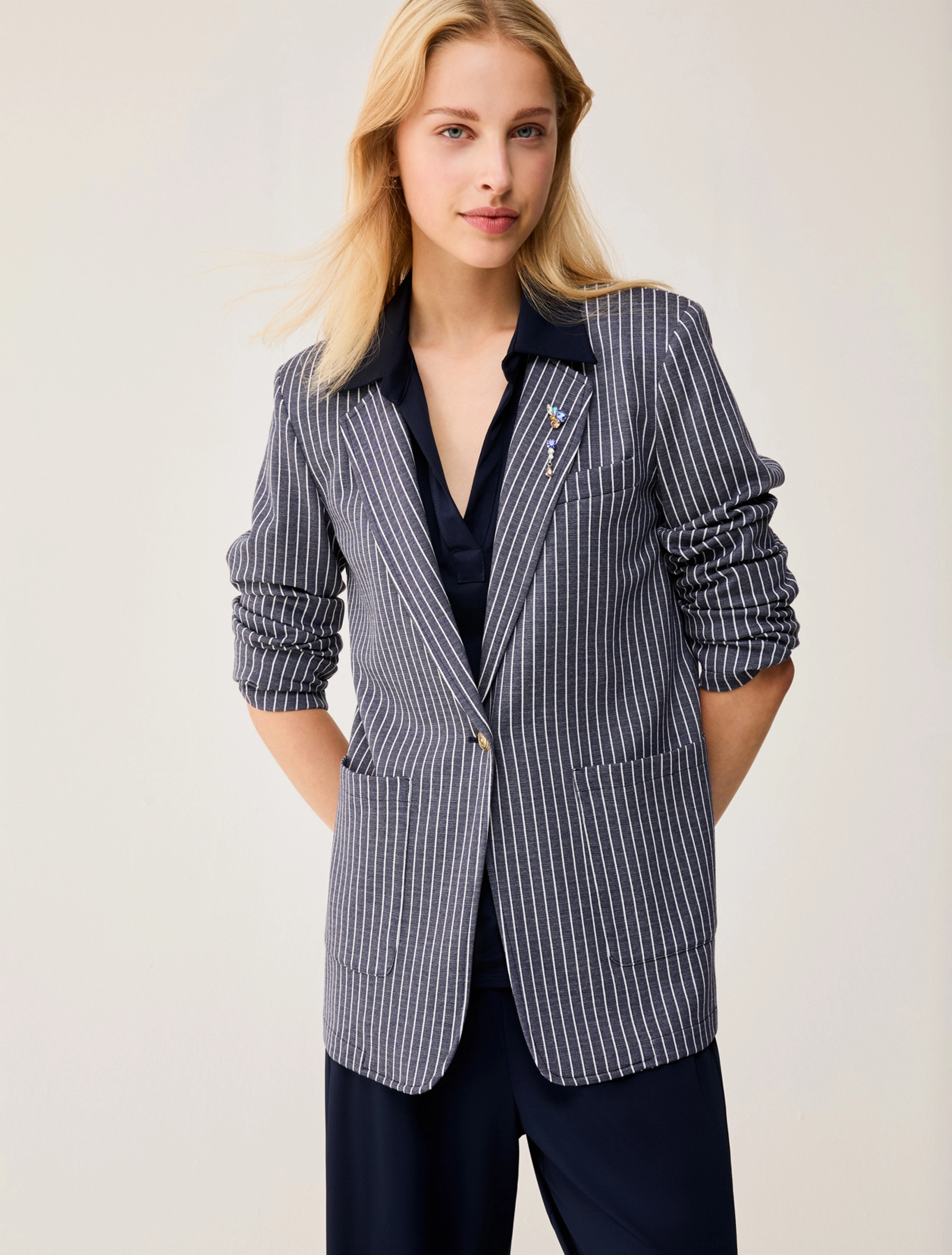 PENNY BLACK Pinstripe jersey blazer Navy