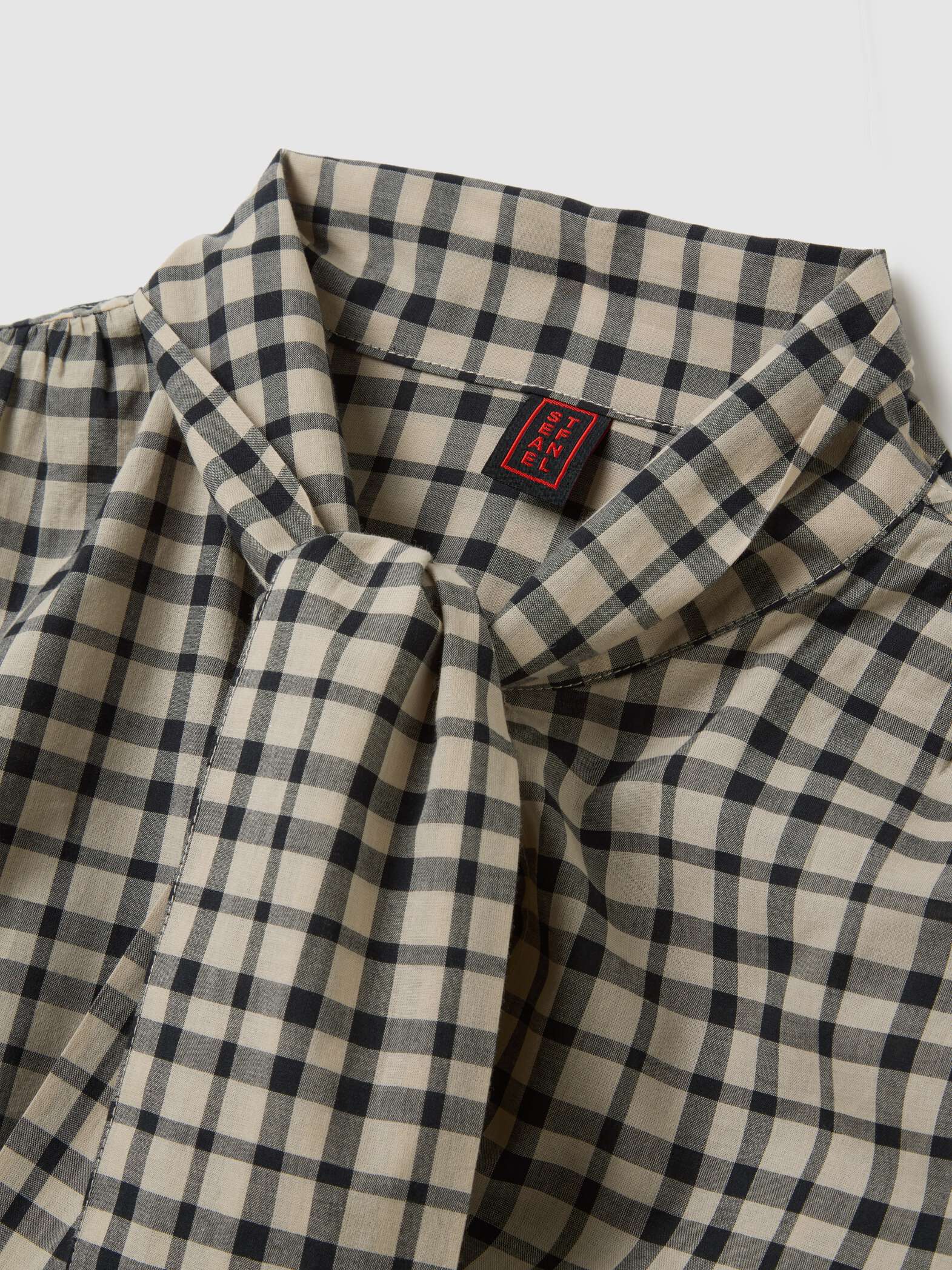 STEFANEL Beige shirt with black checks in pure cotton regular fit