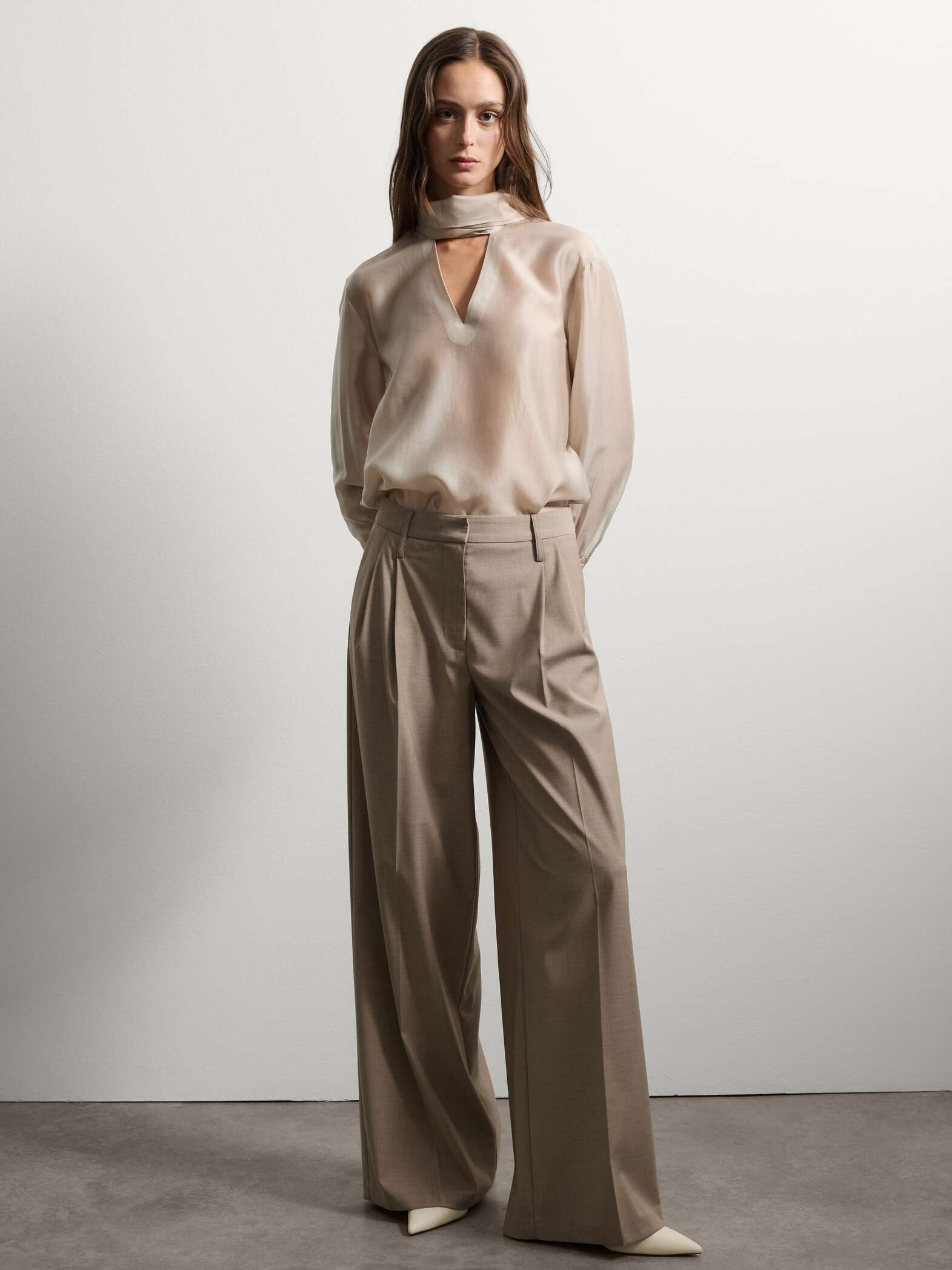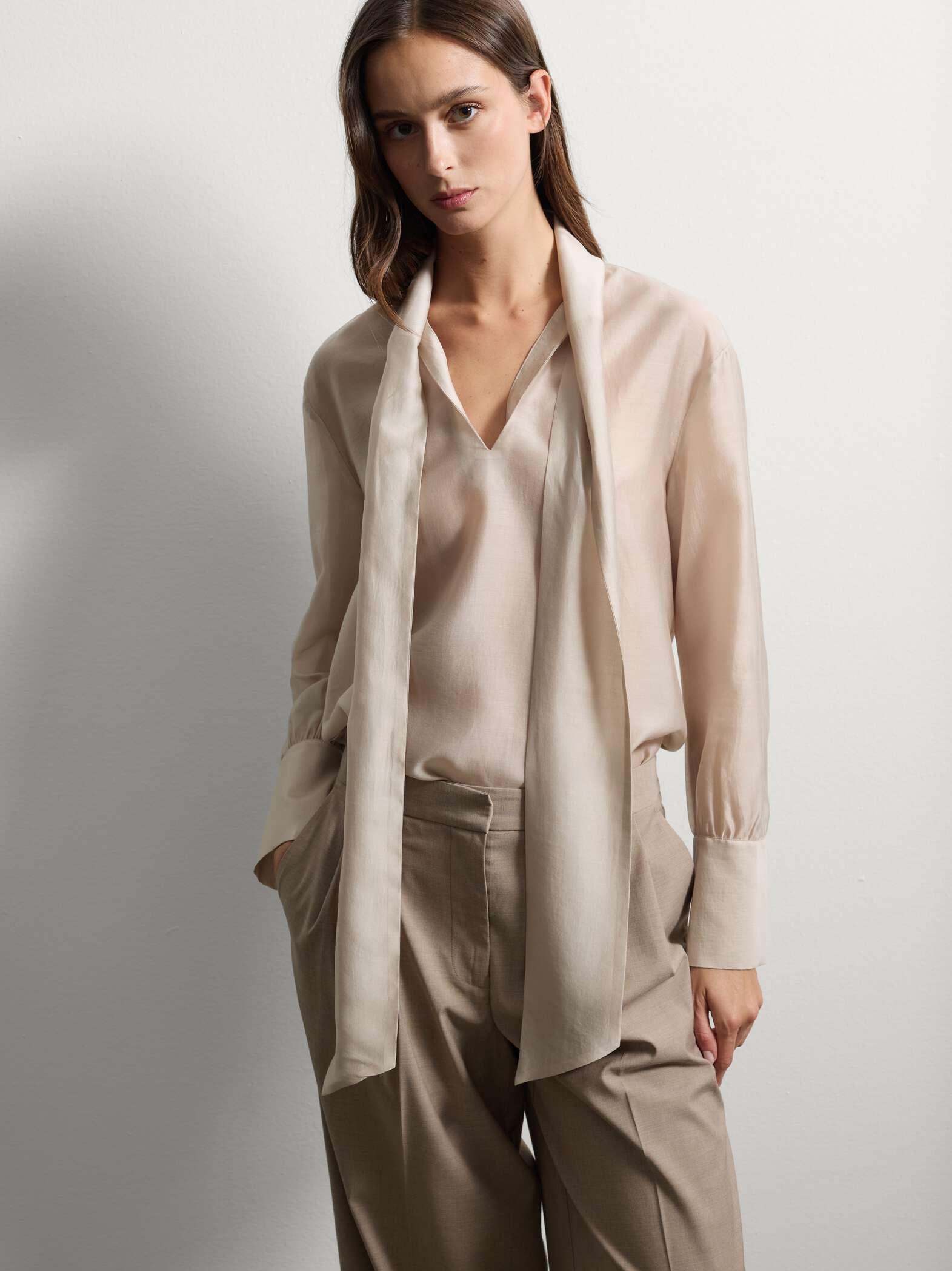 STEFANEL Beige transparent lyocell shirt regular fit with bow