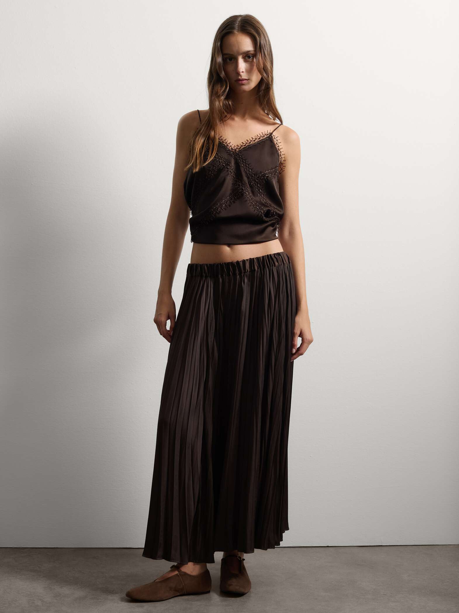 Η καφέ μπλούζα είναι κατασκευασμένη από καθαρή βισκόζη, εξασφαλίζοντας απαλότητα και κομψότητα.