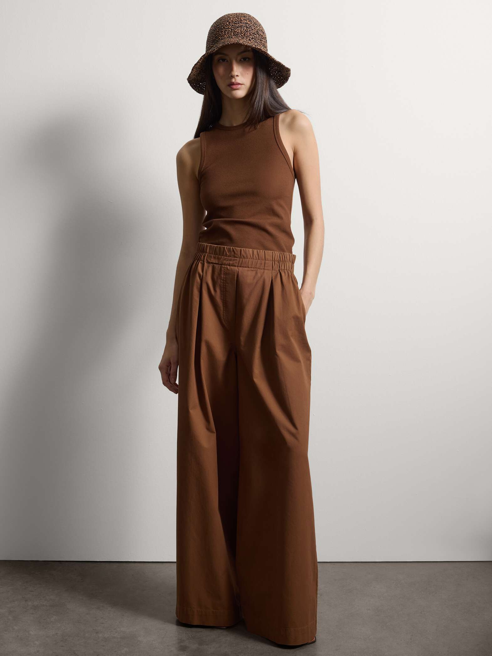 STEFANEL Cloche hat in pure paper fabric Black/brown