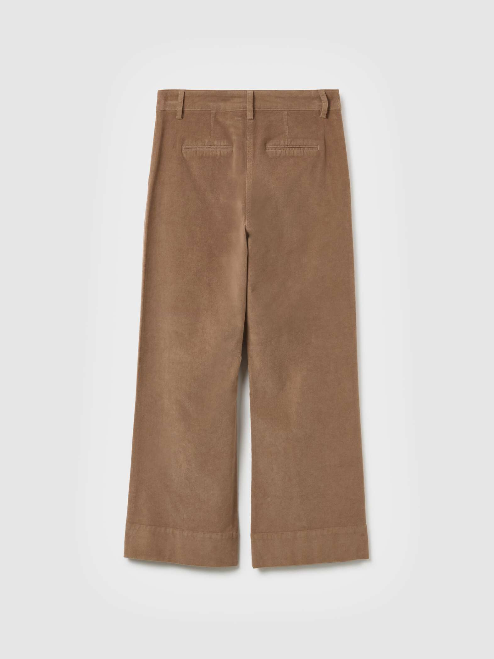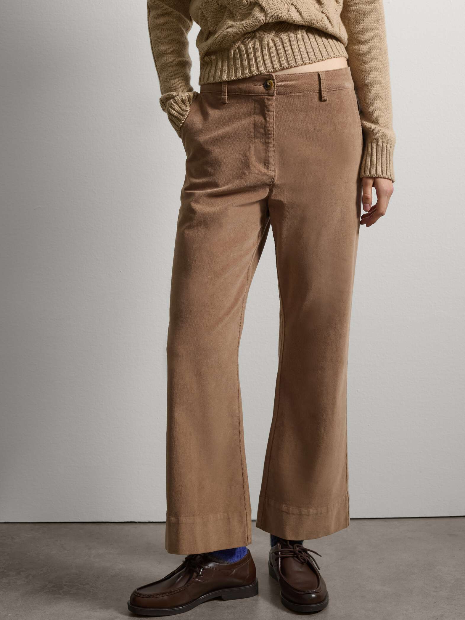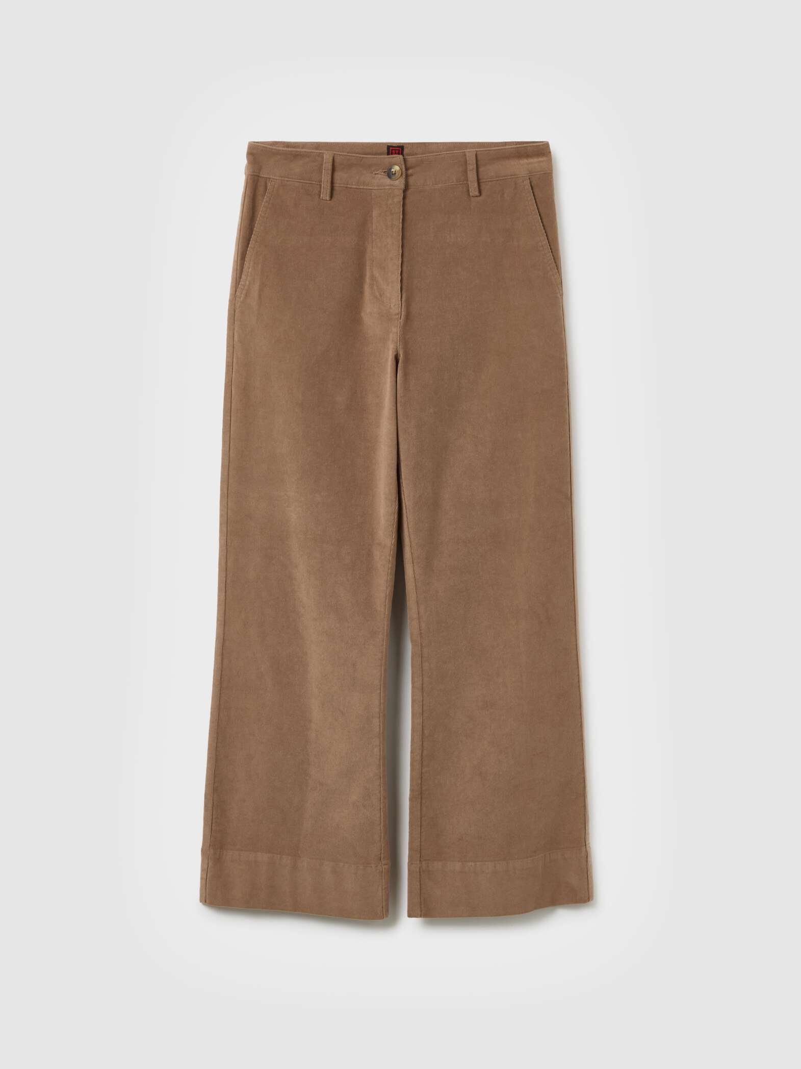 Ανακαλύψτε το καφέ παντελόνι Stefanel με φαρδιά γραμμή, κατασκευασμένο από ελαστικό βαμβάκι. Το σχέδιο με φαρδιά γραμμή με κανονική μέση και λάστιχο εξασφαλίζει άνετη και κομψή εφαρμογή. Ιδανικό για να εμπλουτίσετε την γκαρνταρόμπα σας για το φθινόπωρο-χειμώνα, αυτό το βελούδινο παντελόνι προσφέρει ένα κομψό και casual στυλ.