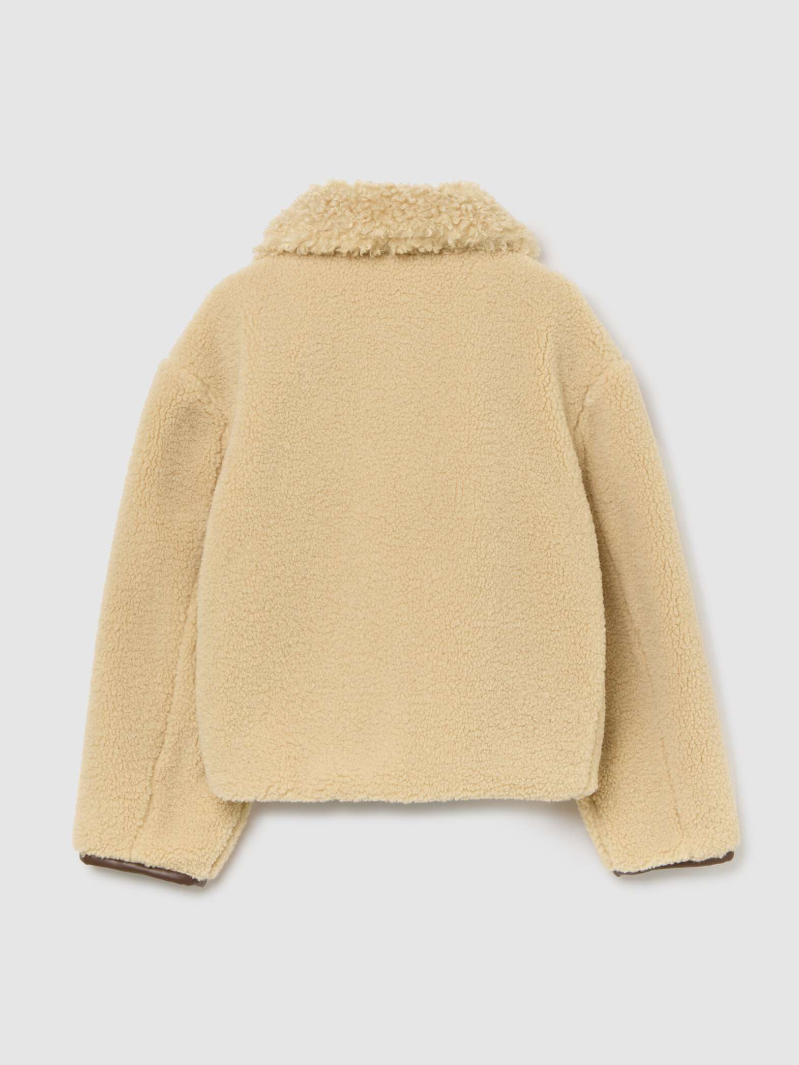 Αυτό το μπεζ μπουφάν είναι φτιαγμένο από απαλό φλις, ιδανικό για να σας προσφέρει ζεστή και άνετη ατμόσφαιρα.