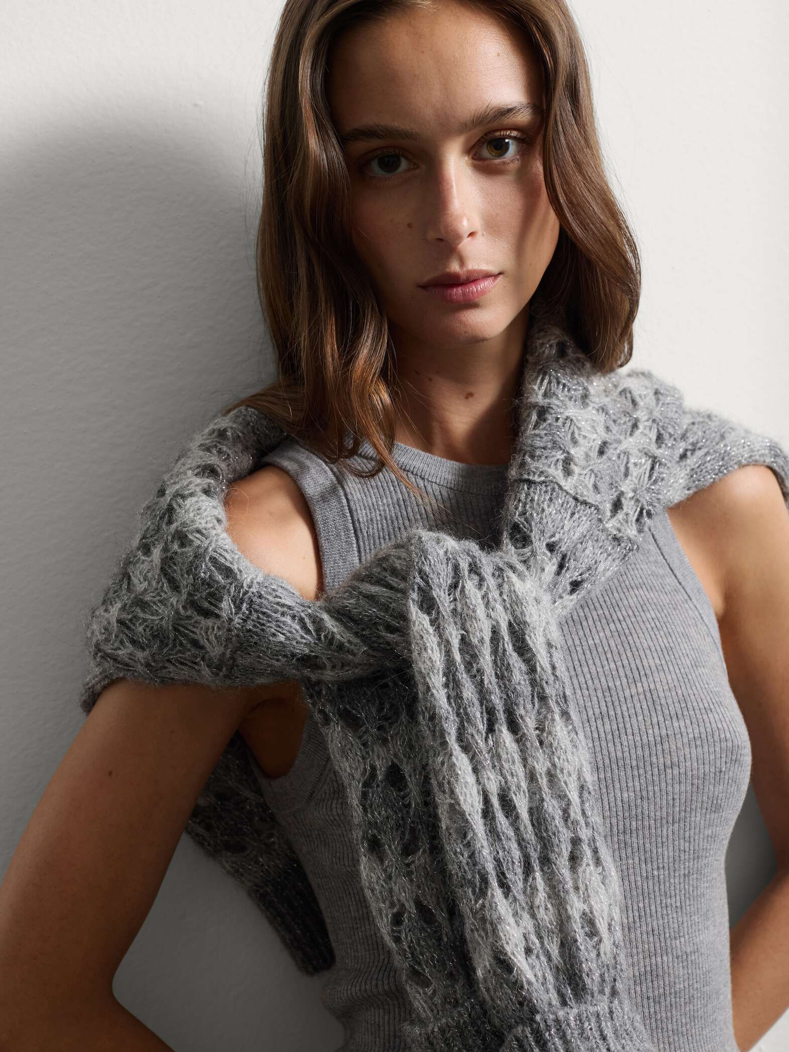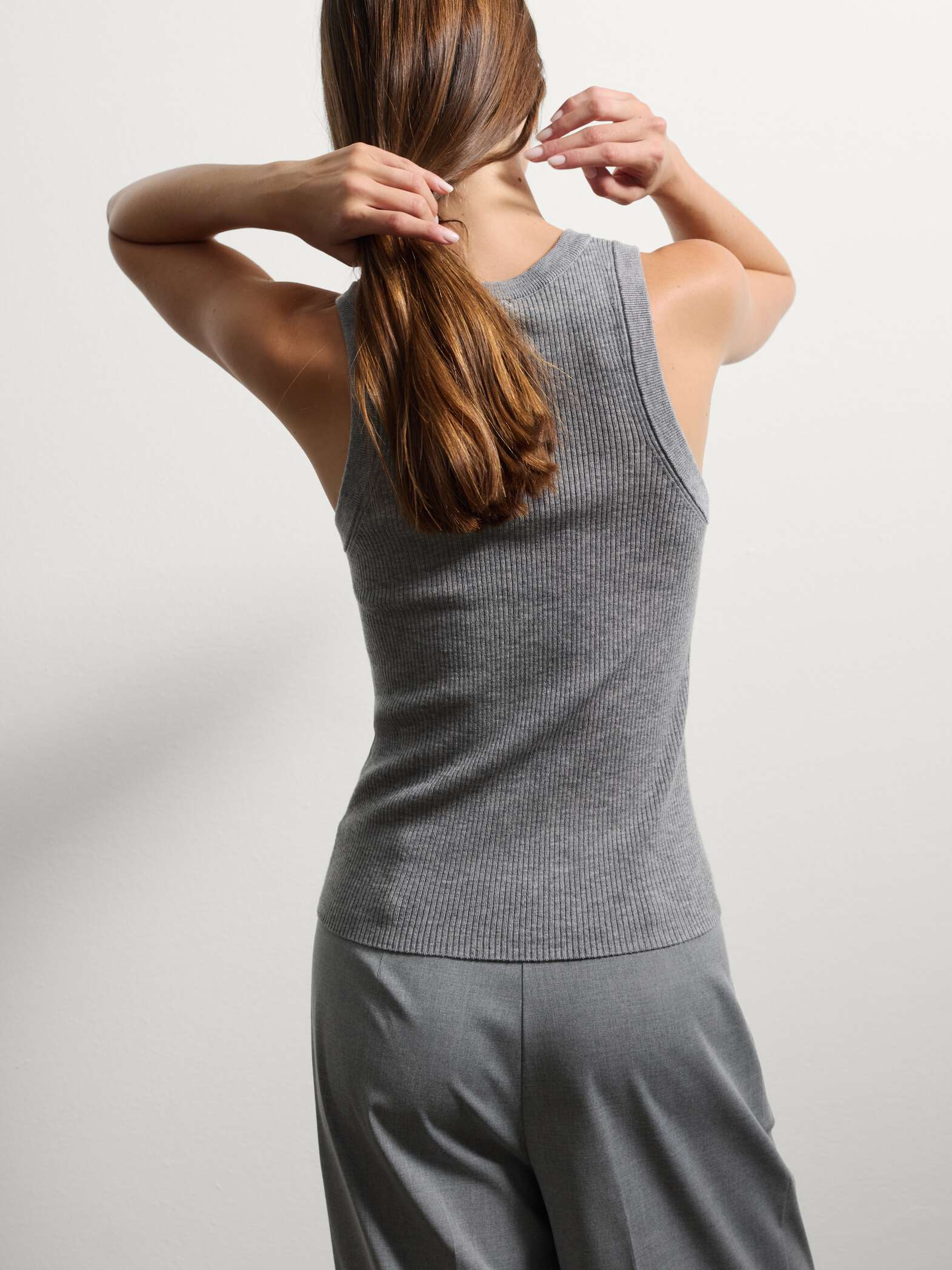 Το γκρι γιλέκο είναι κατασκευασμένο από μείγμα μαλλιού και ελαστικού Lyocell.