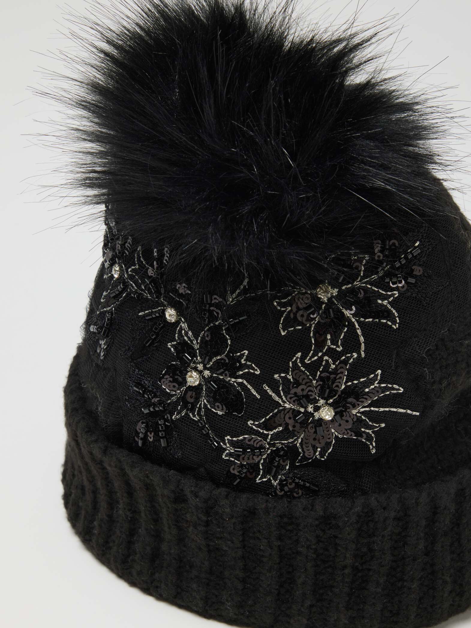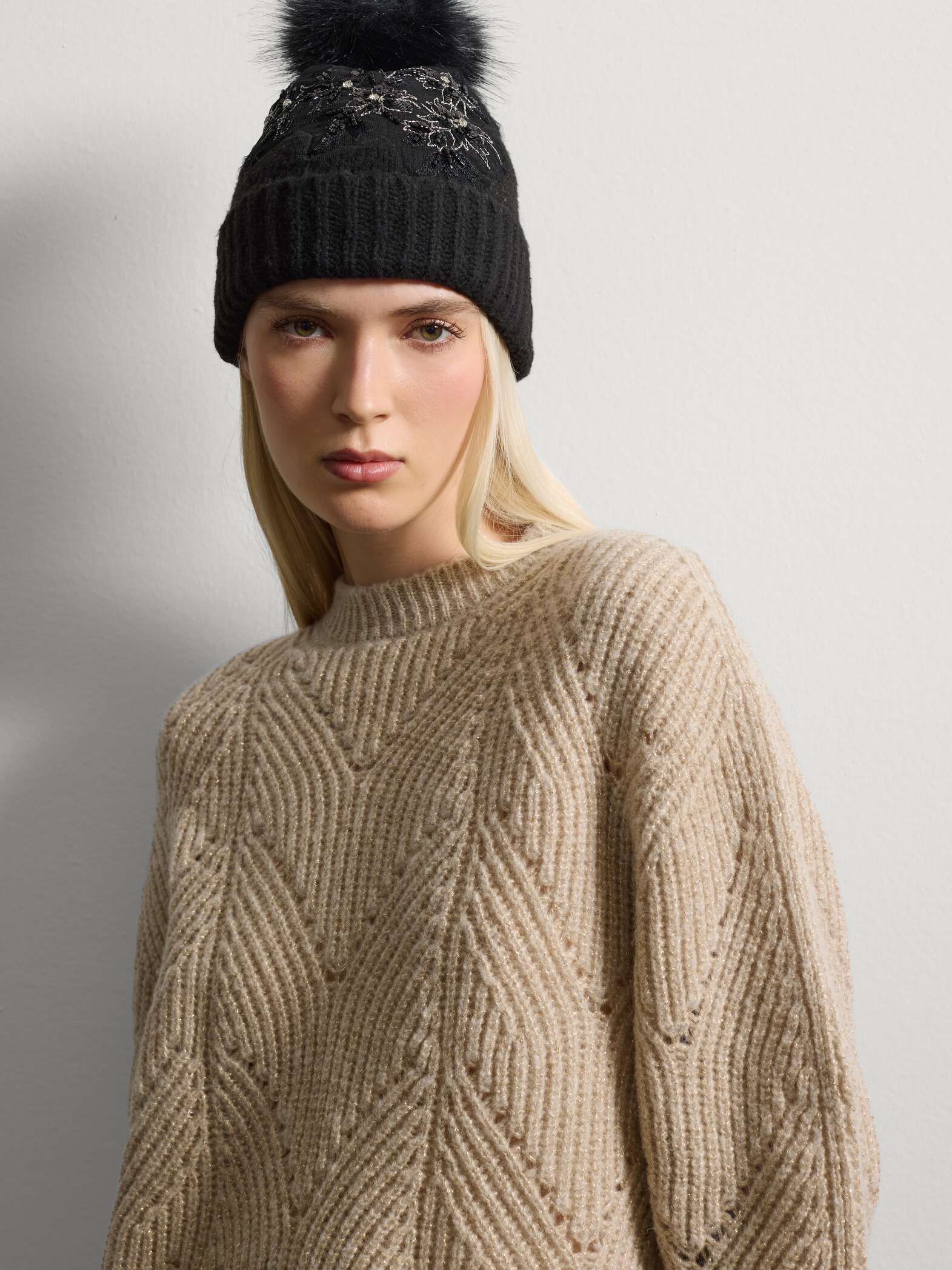 Αυτό το μαύρο σκουφάκι με πον πον είναι το τέλειο αξεσουάρ για τις πιο κρύες εποχές.