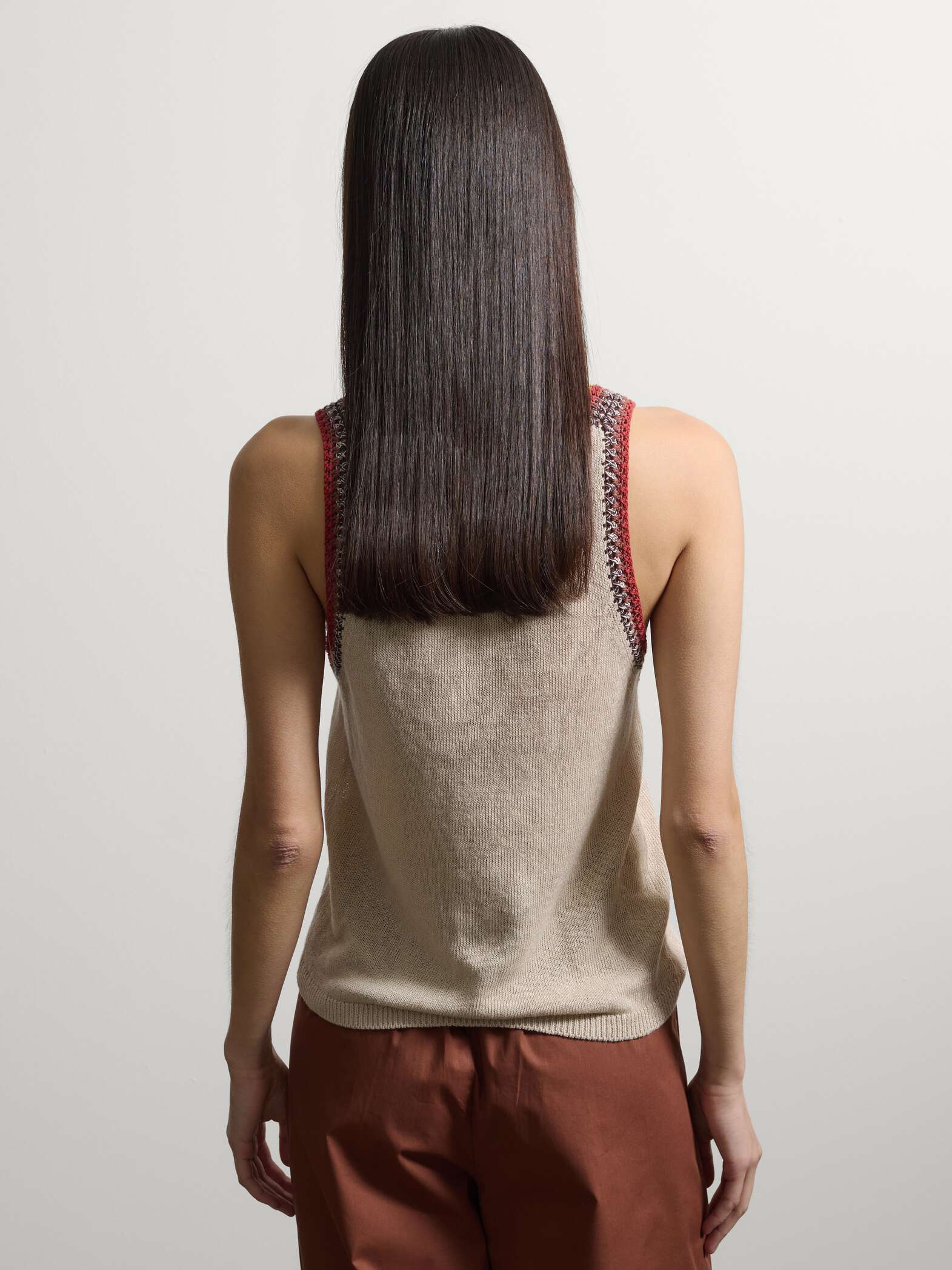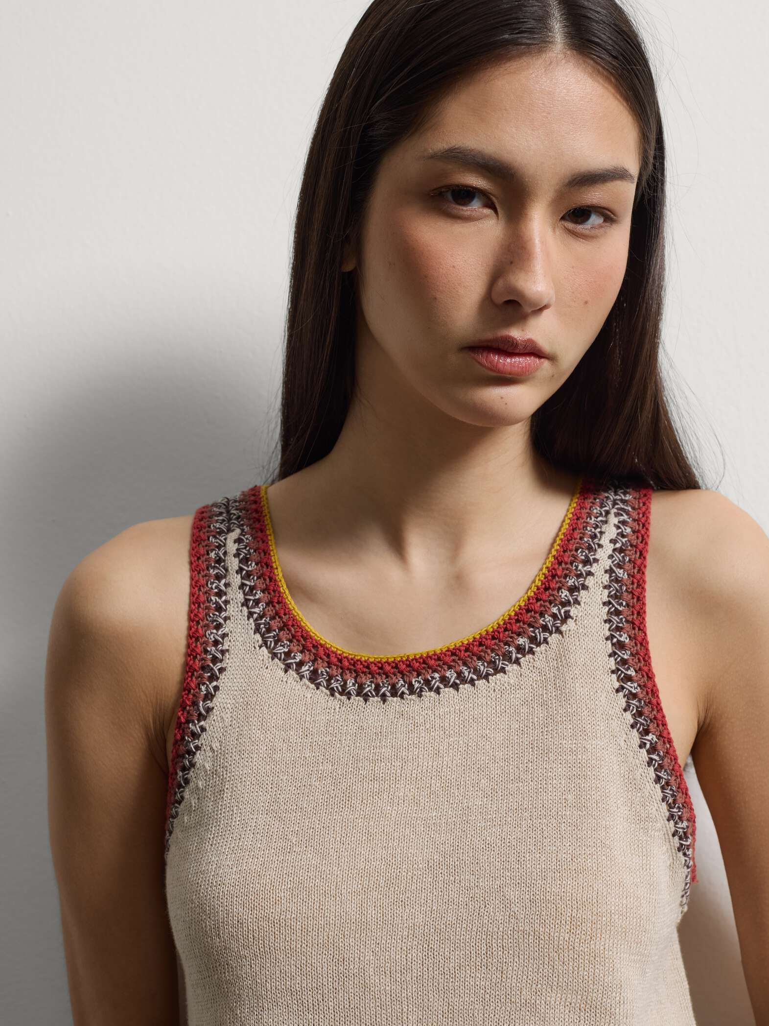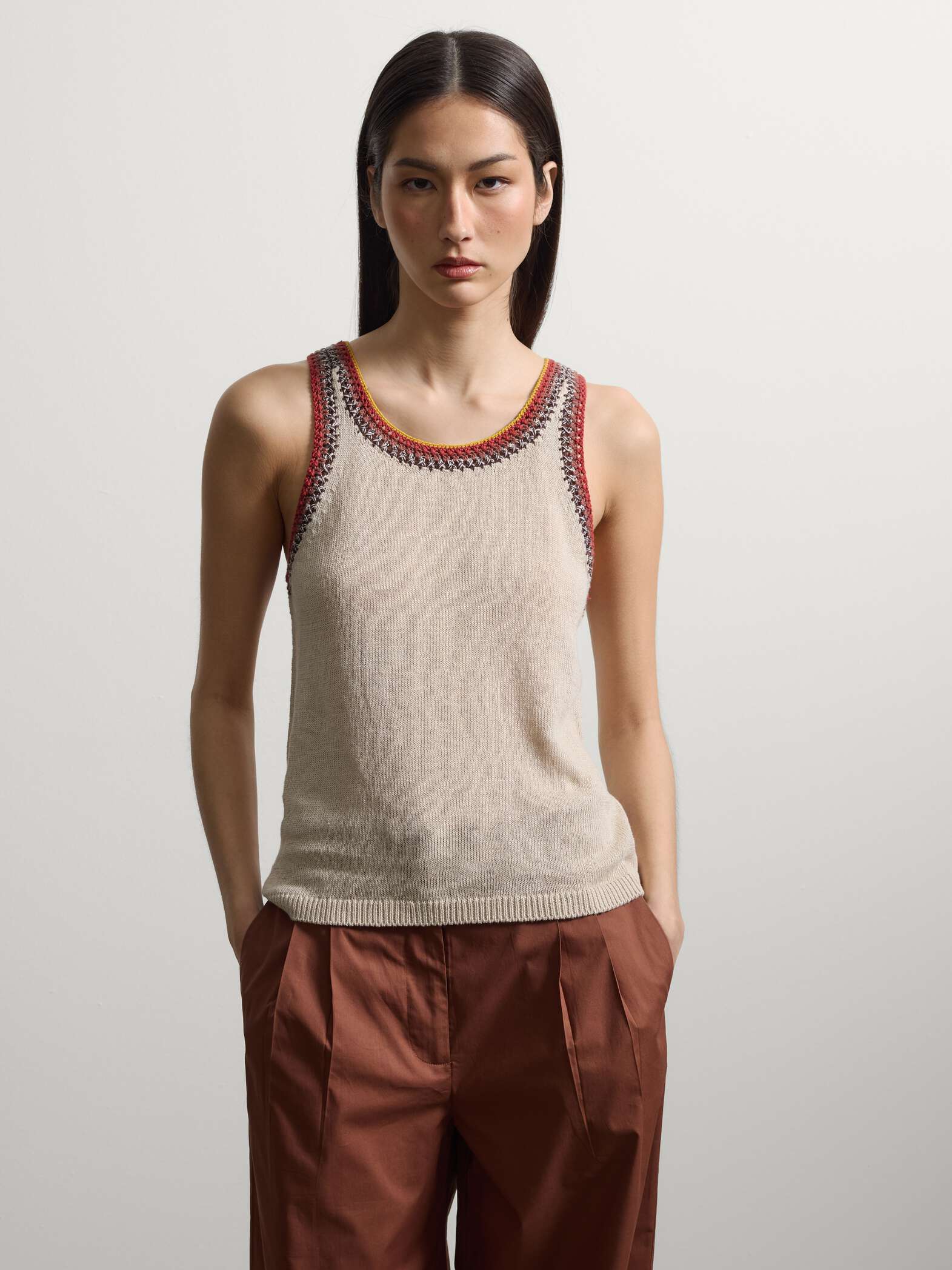 STEFANEL Linen blend tank top with contrasting trim, regular fit Beige