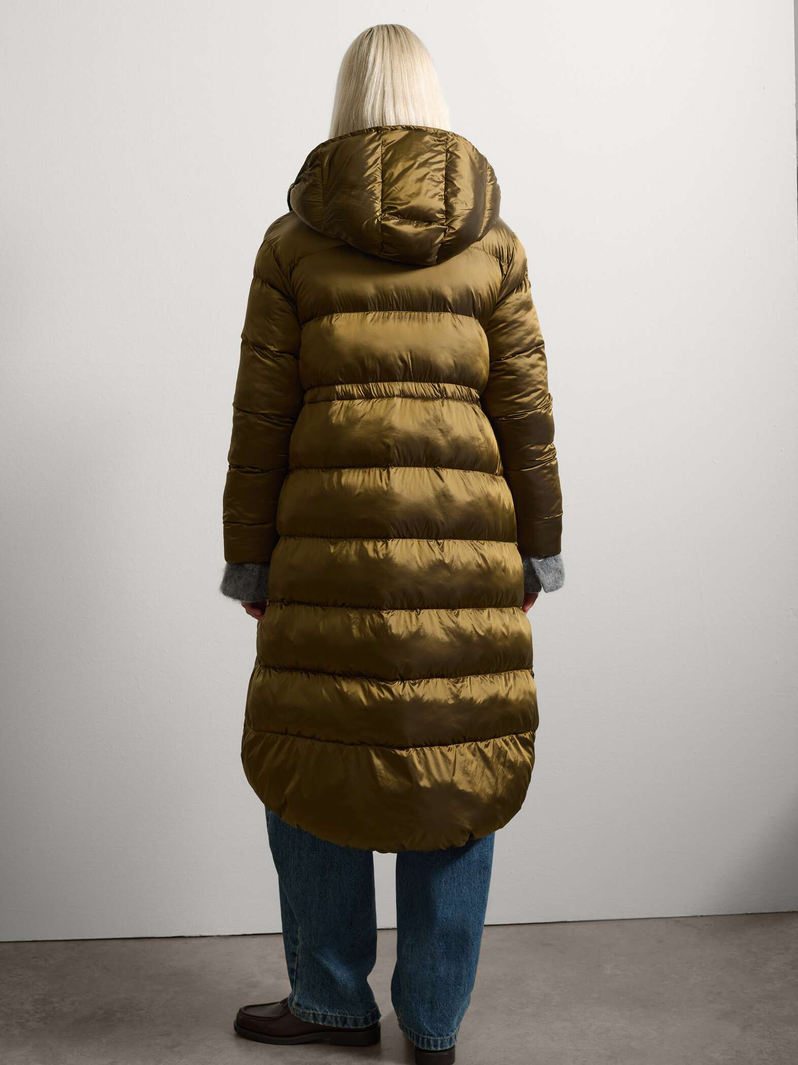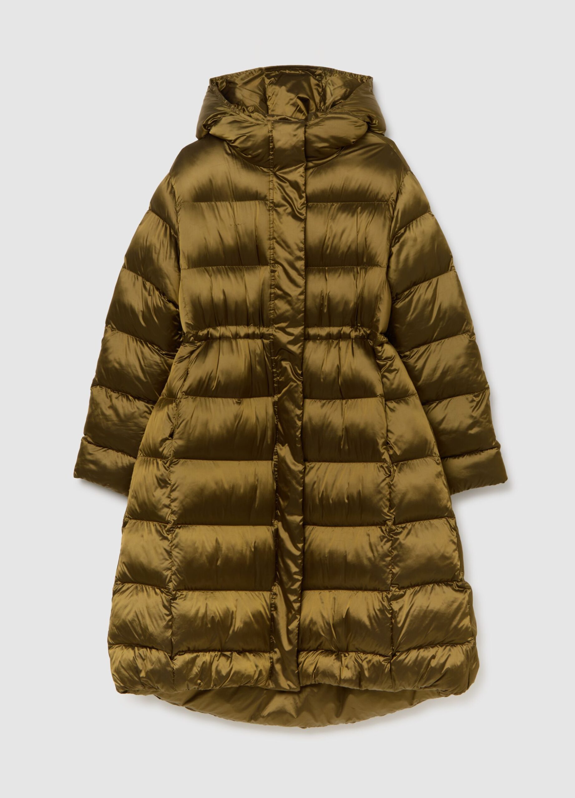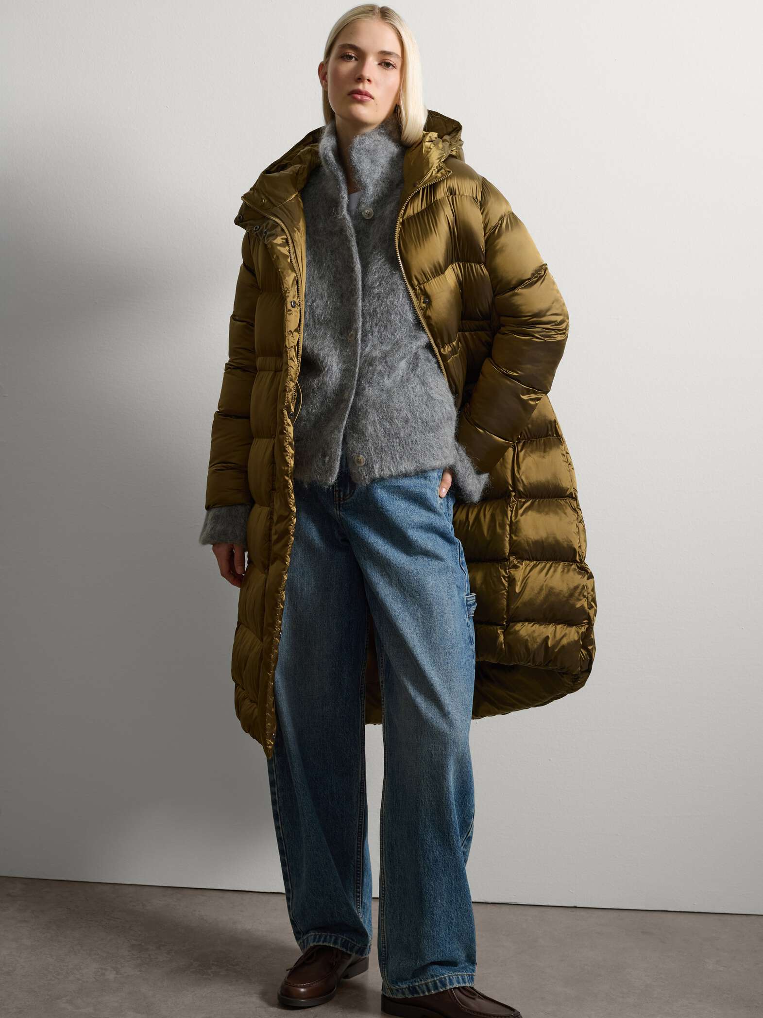 STEFANEL Long Quilted Jacket with Zip and Buttons Brown/Green