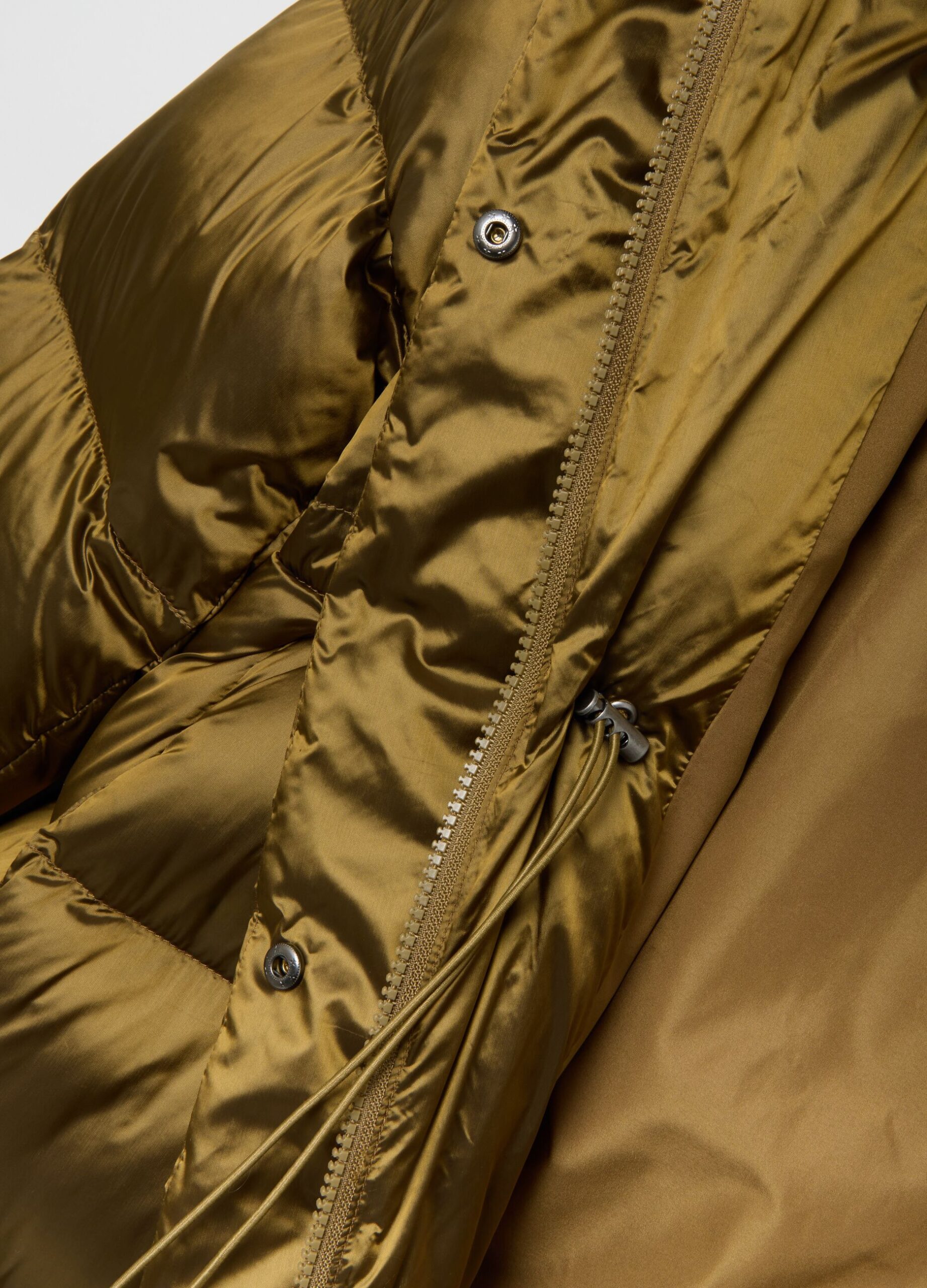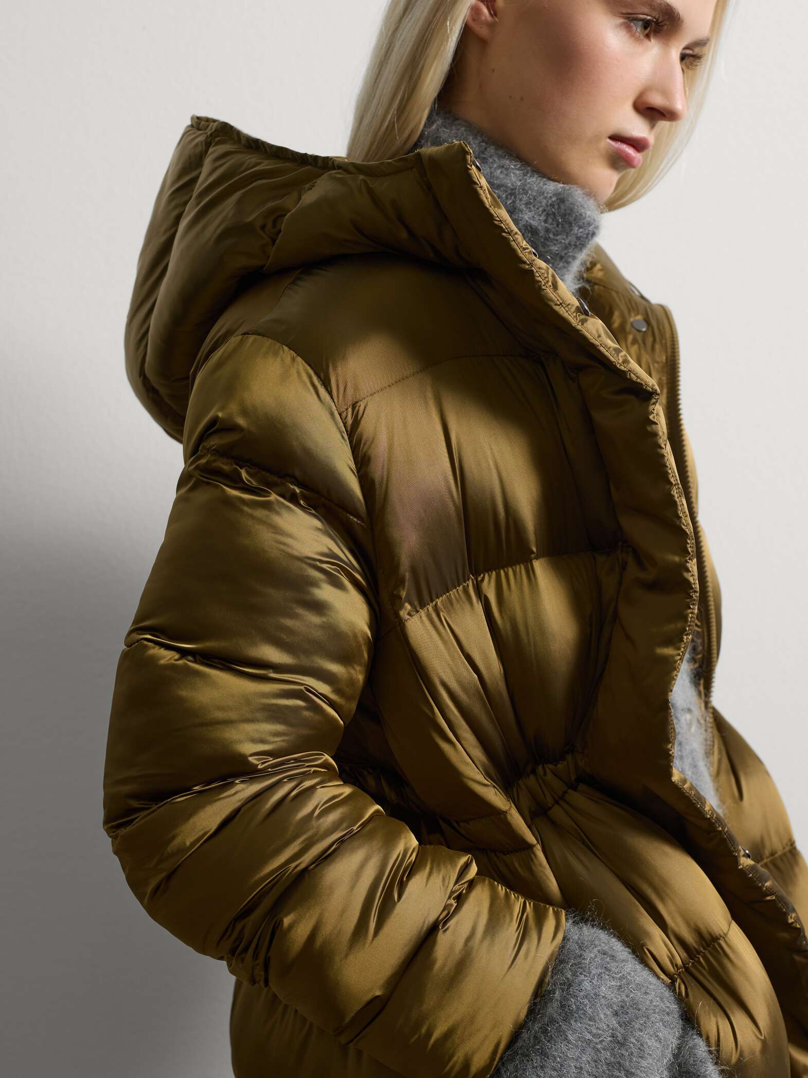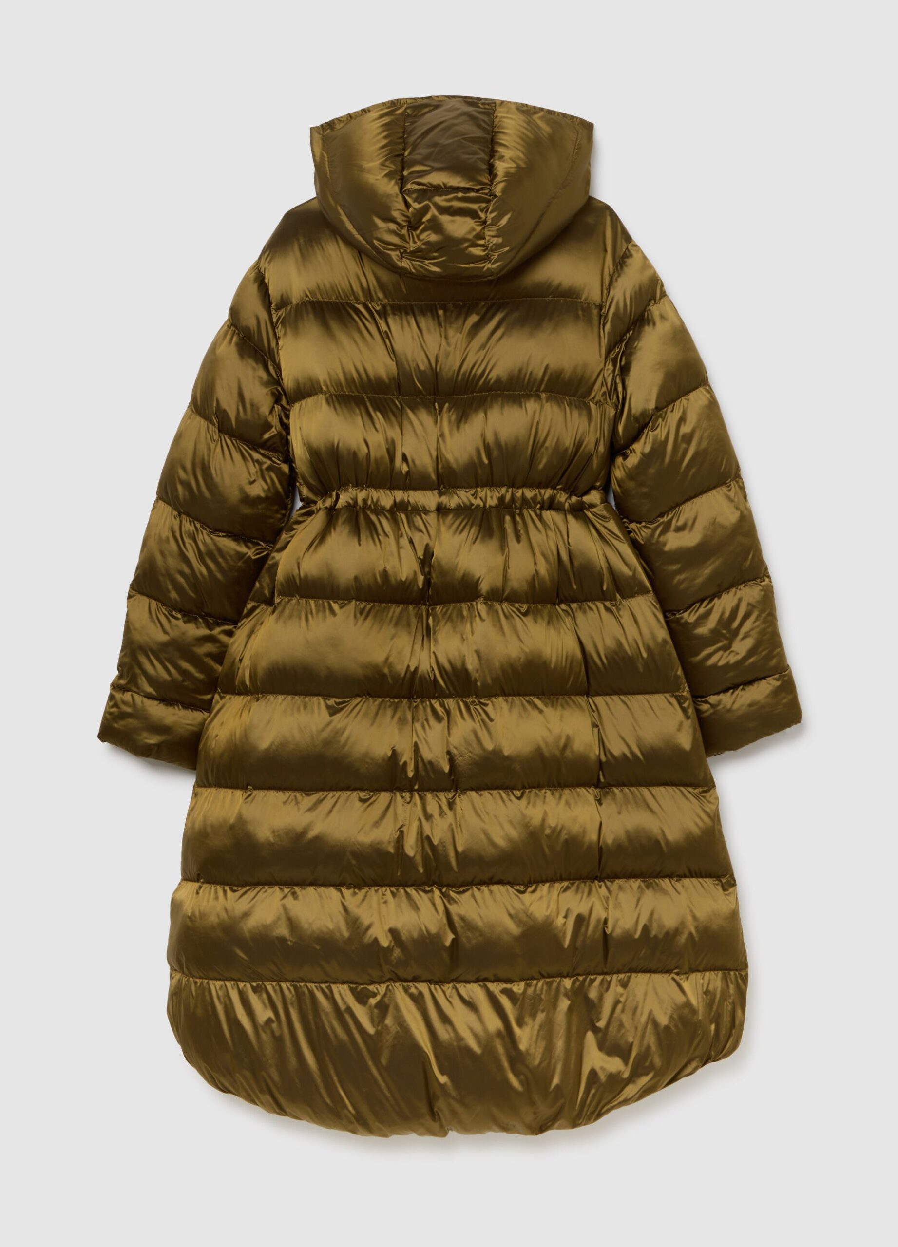 STEFANEL Long Quilted Jacket with Zip and Buttons Brown/Green