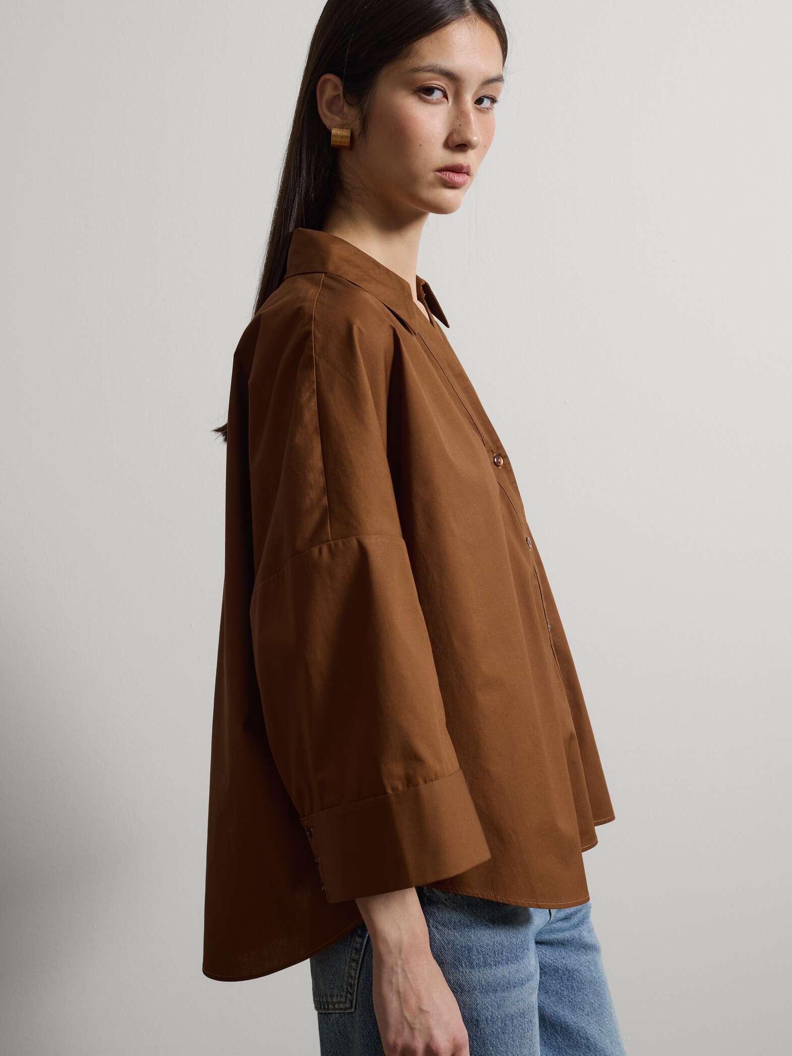 STEFANEL oversized fit pure cotton shirt with three-quarter sleeves Brown