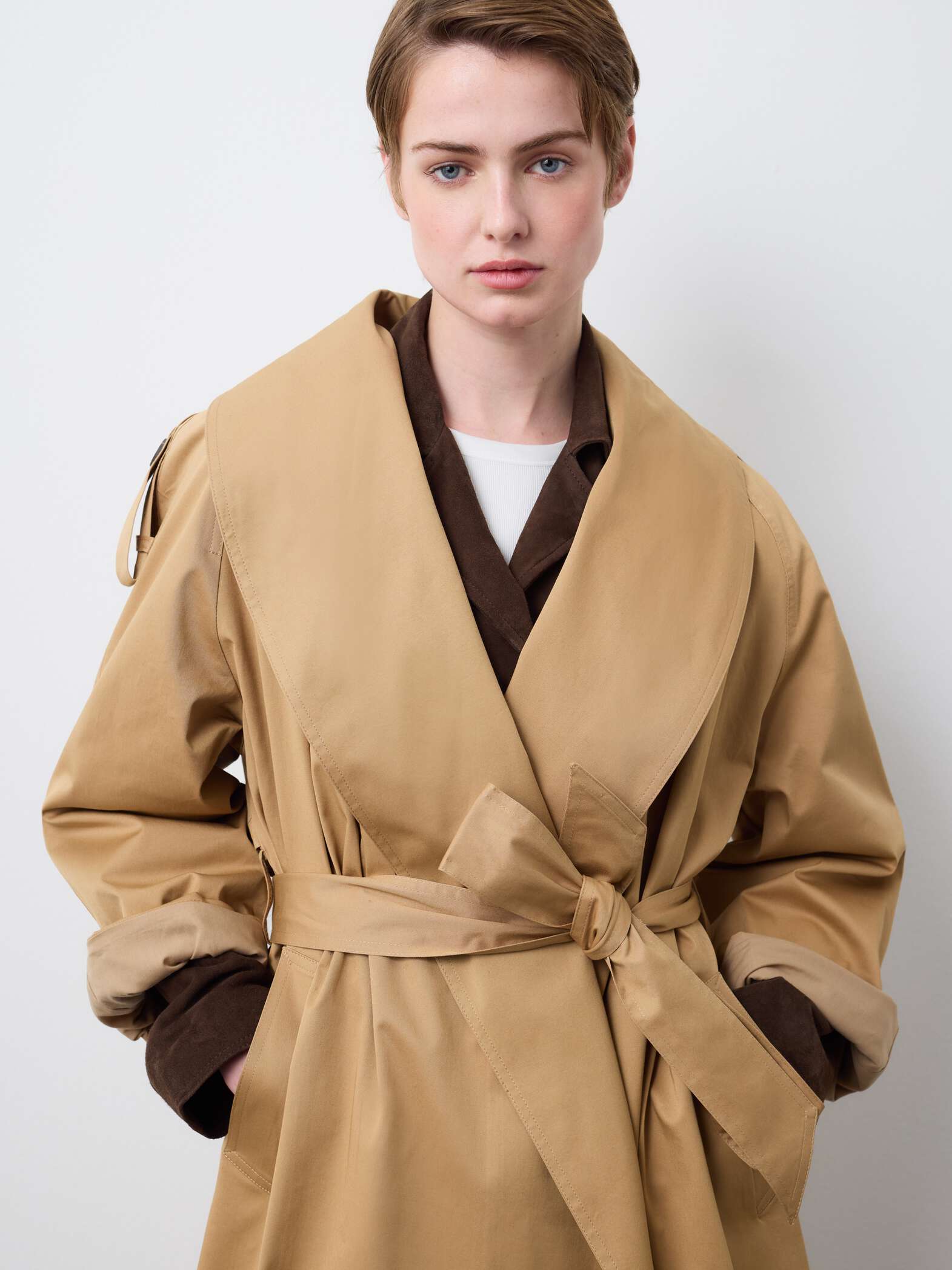 STEFANEL Oversized stretch cotton blend trench coat Beige