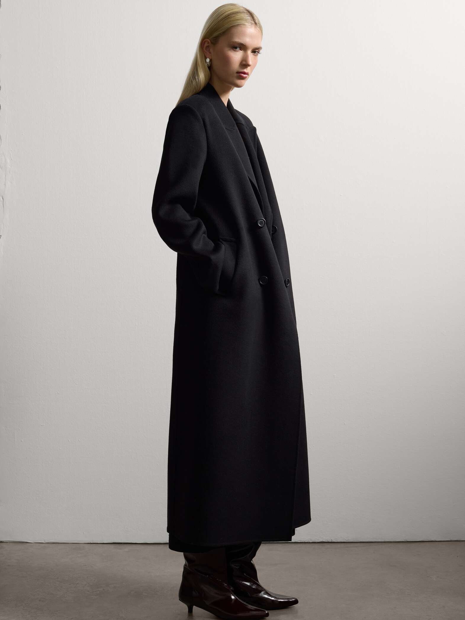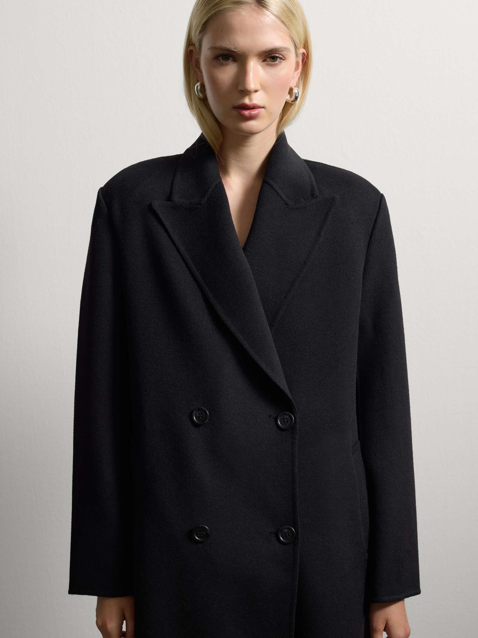 Το μαύρο παλτό από μείγμα μαλλιού είναι ένα κομψό και διαχρονικό κομμάτι, ιδανικό για να αντιμετωπίσετε τη χειμερινή περίοδο με στυλ.