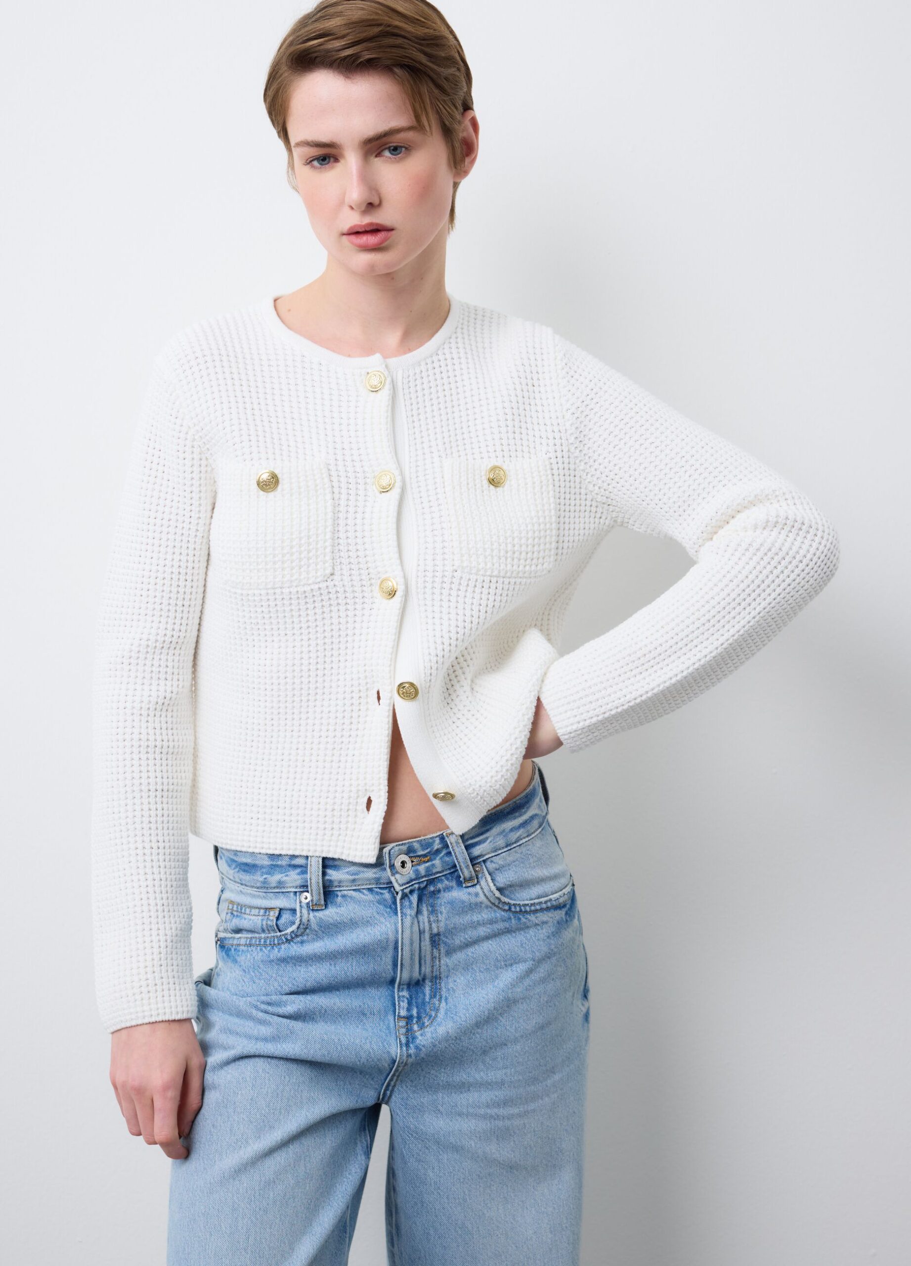 STEFANEL Pure cotton cardigan, regular fit with buttons White