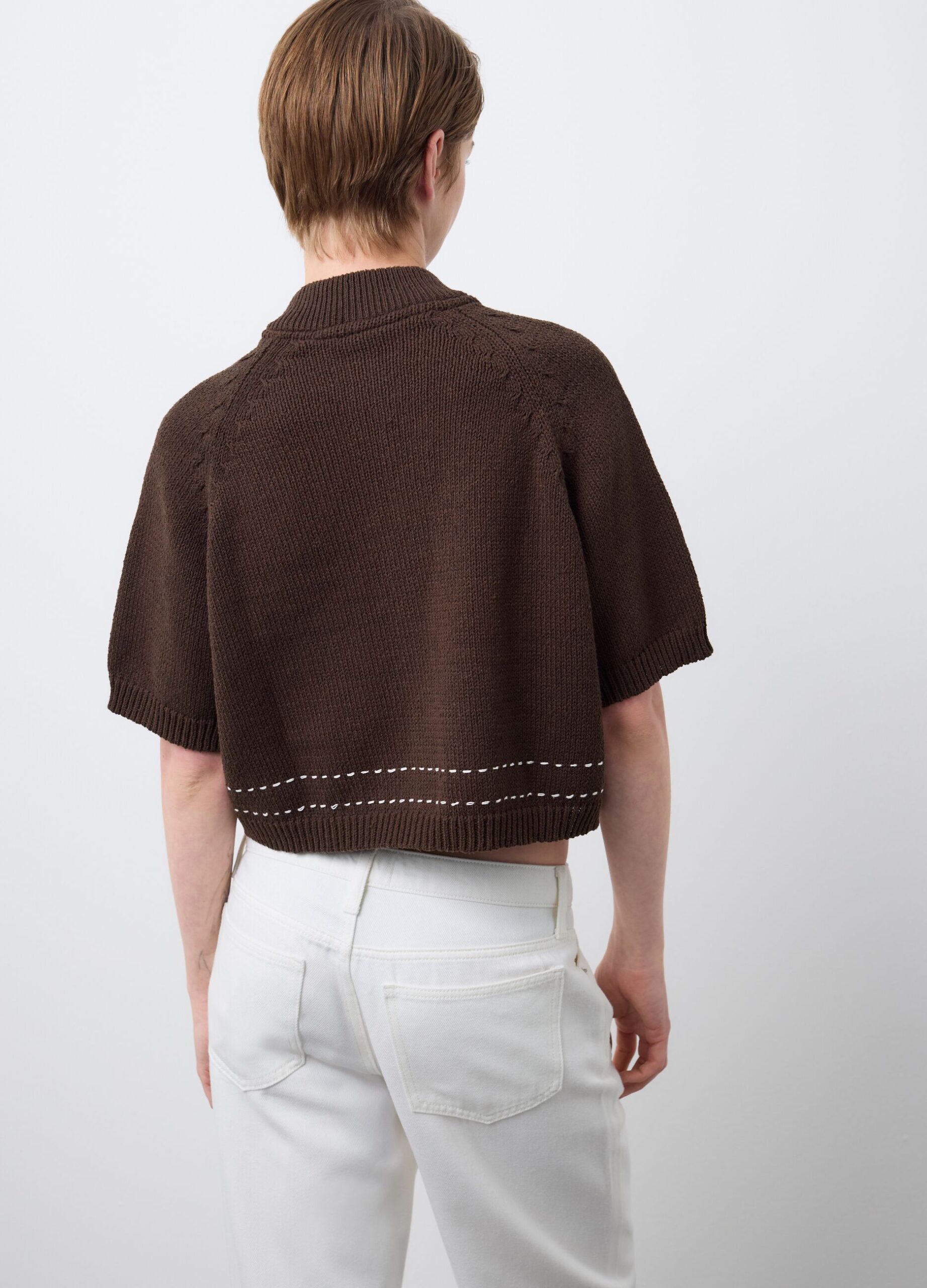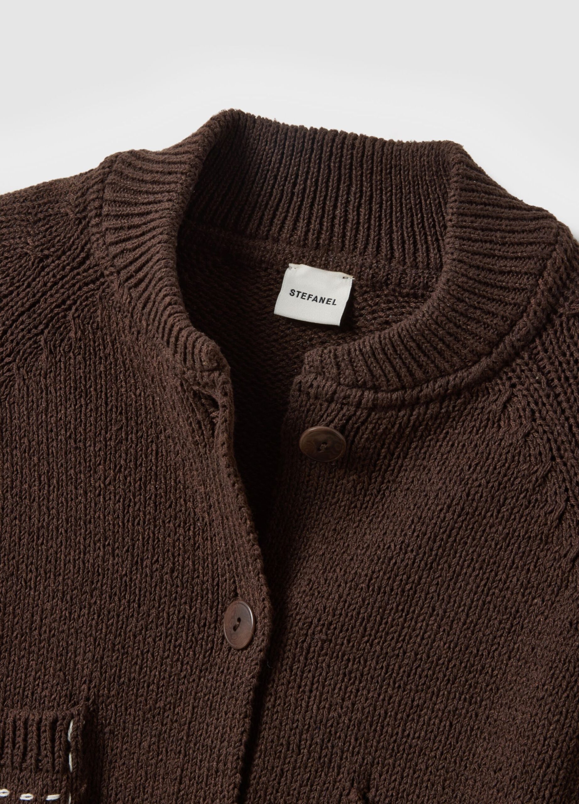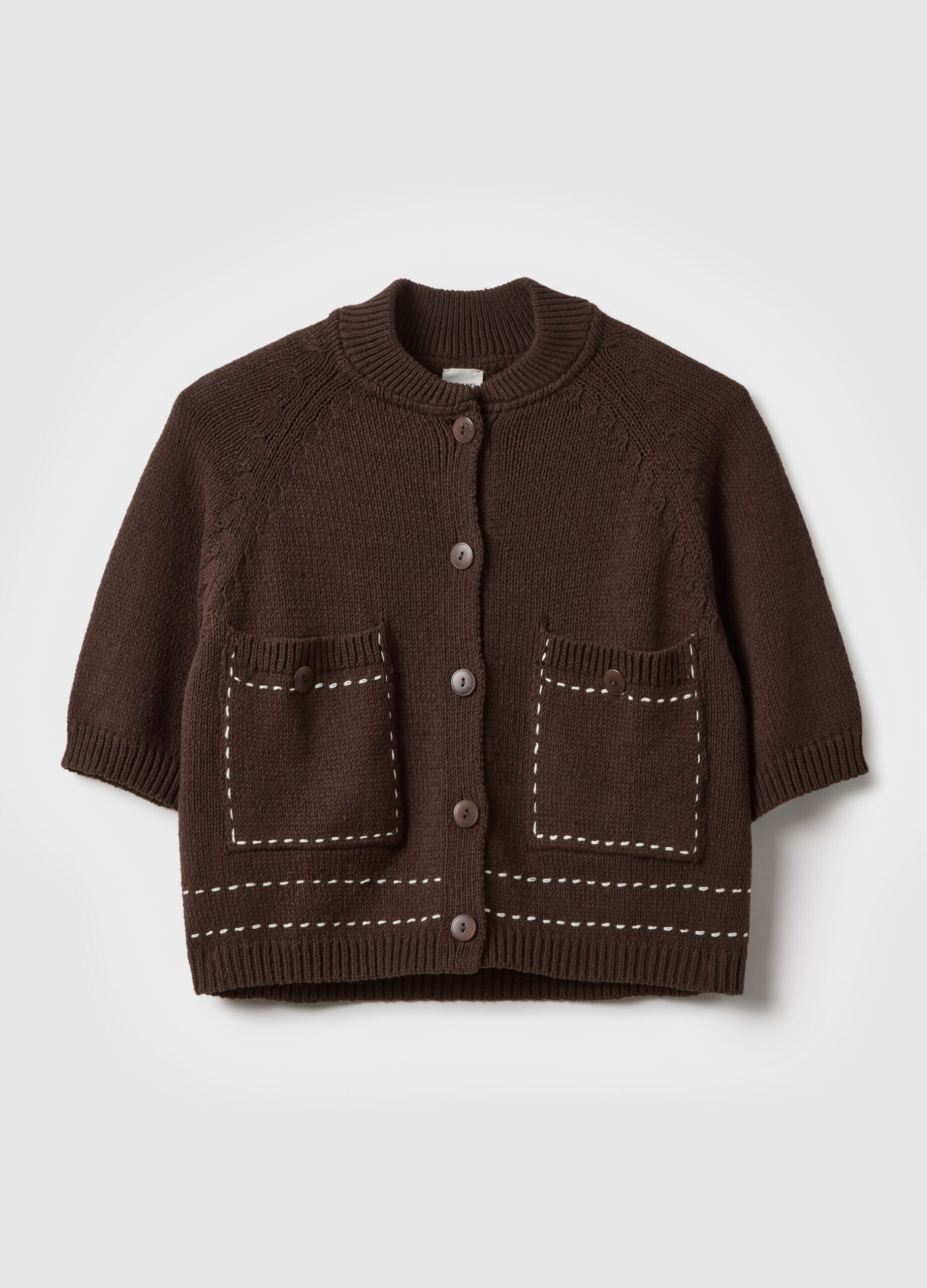STEFANEL Regular fit cotton blend cardigan with pockets Brown