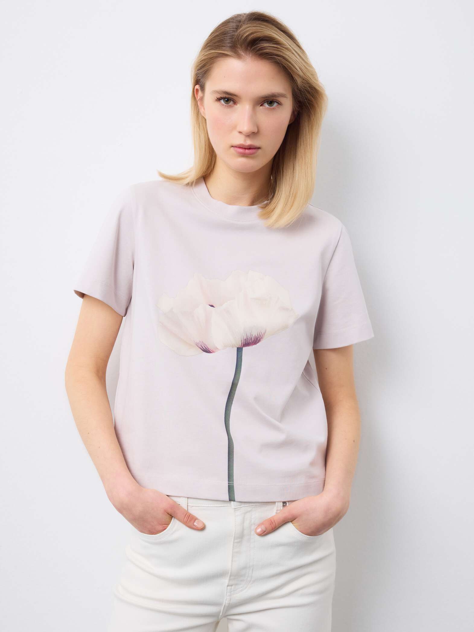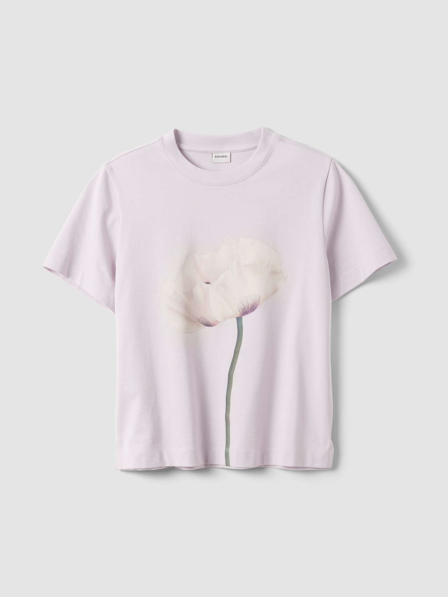 STEFANEL Regular fit crew neck cotton T-shirt with floral design Pastel Pink