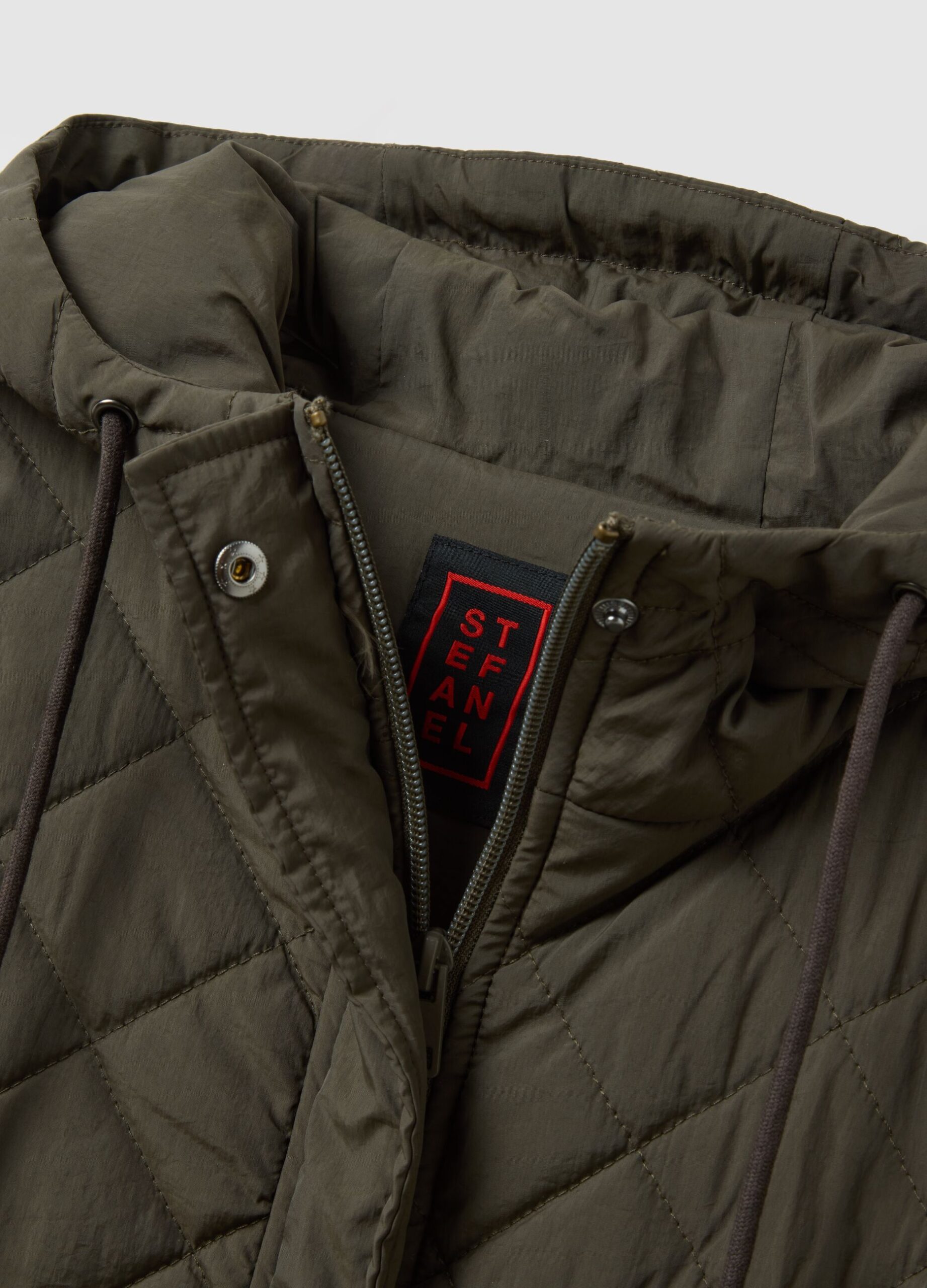 Το καπιτονέ σχέδιο προσφέρει λειτουργικότητα και στυλ, ενώ το κλείσιμο με φερμουάρ χωρίς κουμπιά εξασφαλίζει πρακτική εφαρμογή.