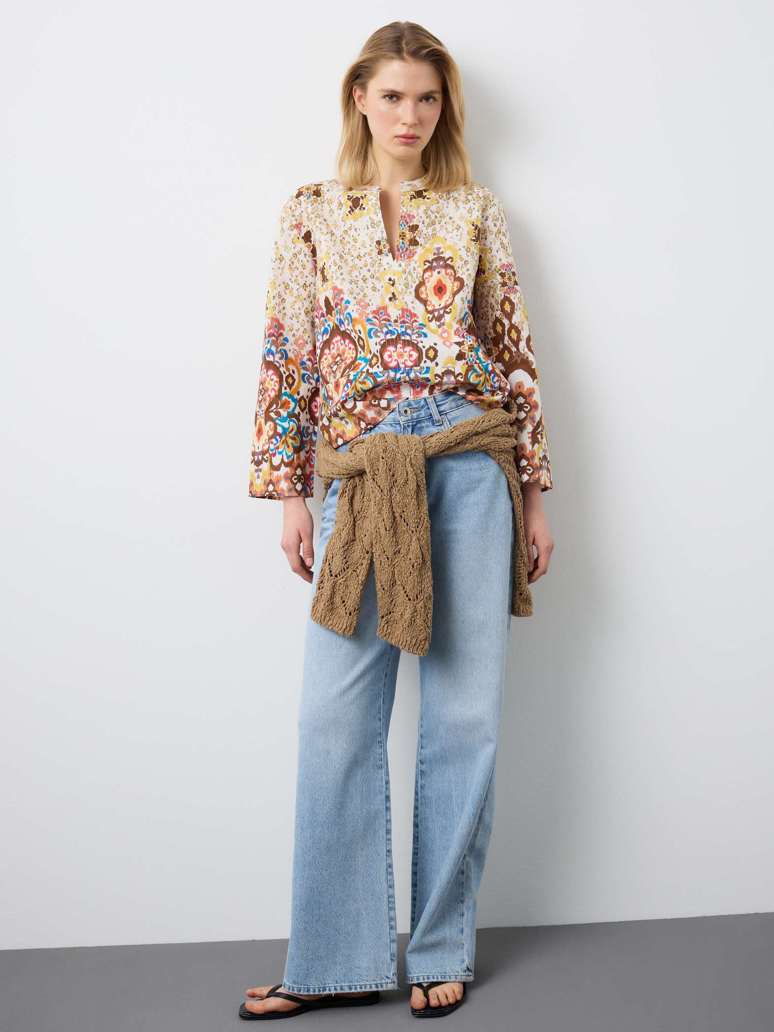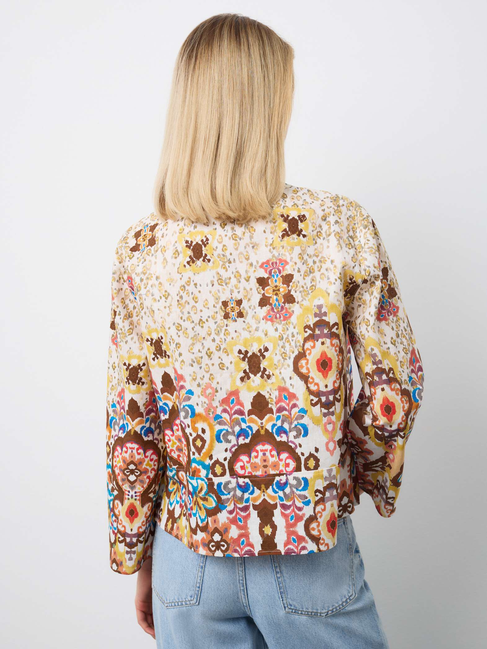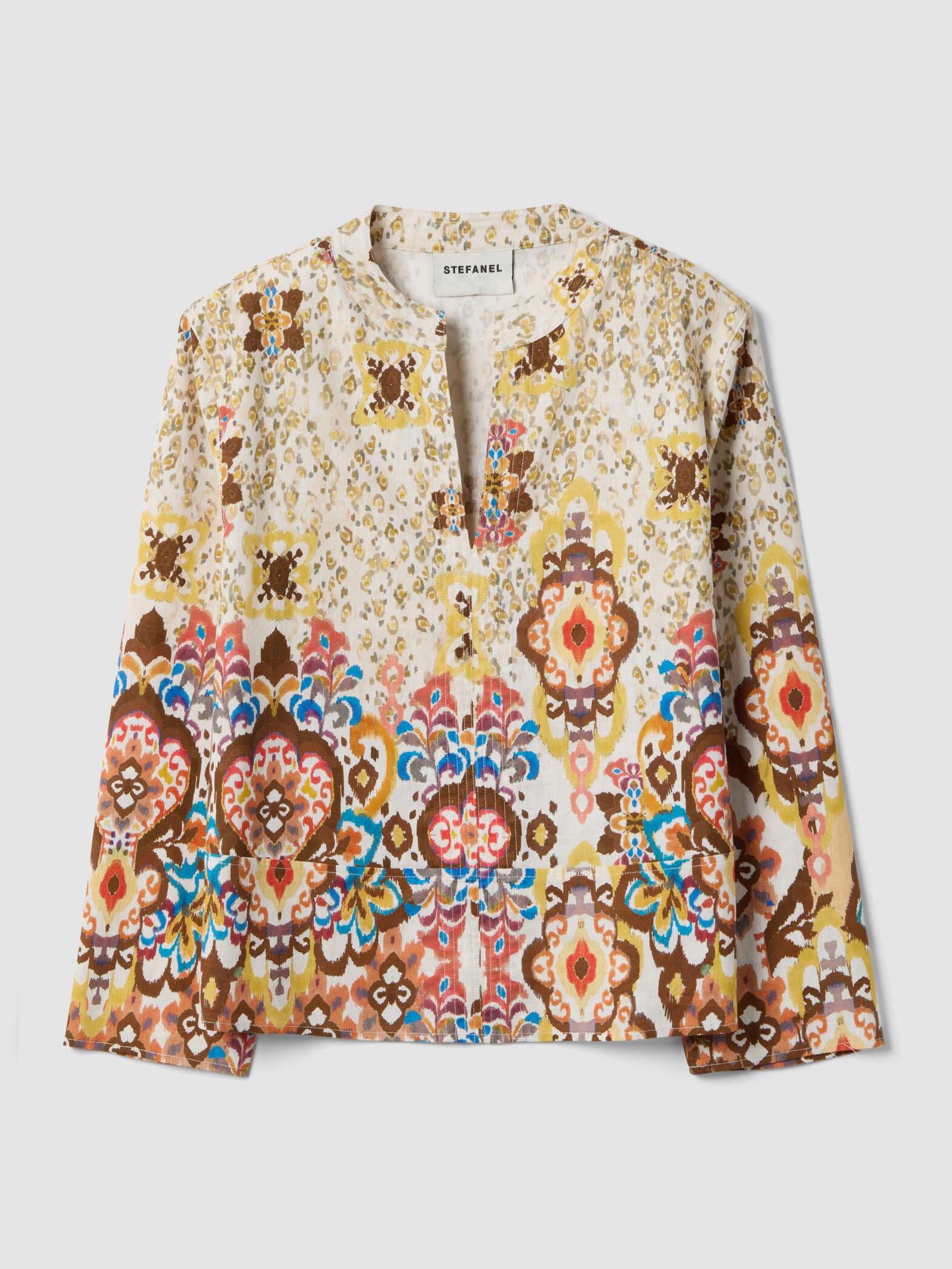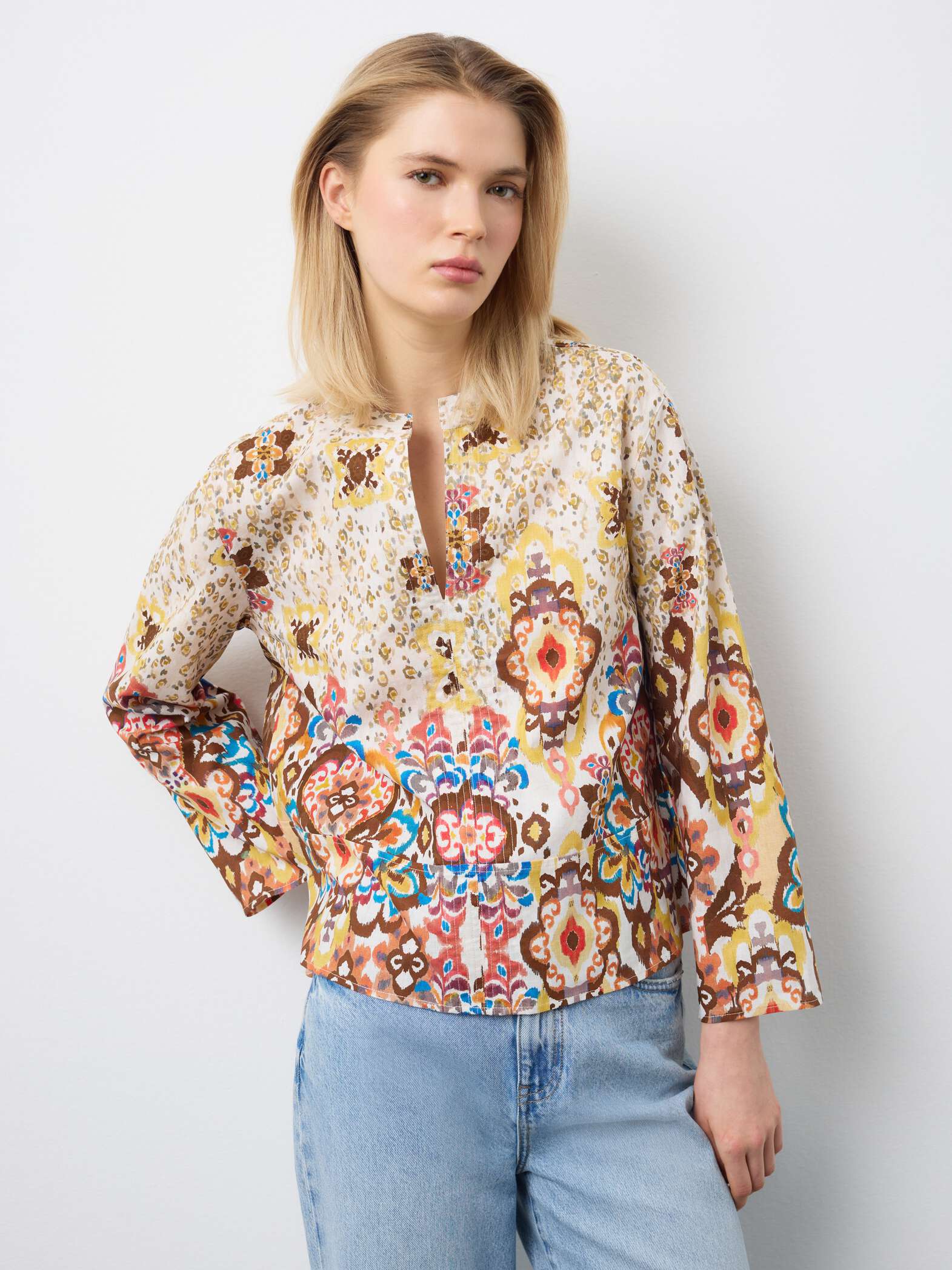 STEFANEL Regular-fit linen and cotton blend shirt with multicolor pattern