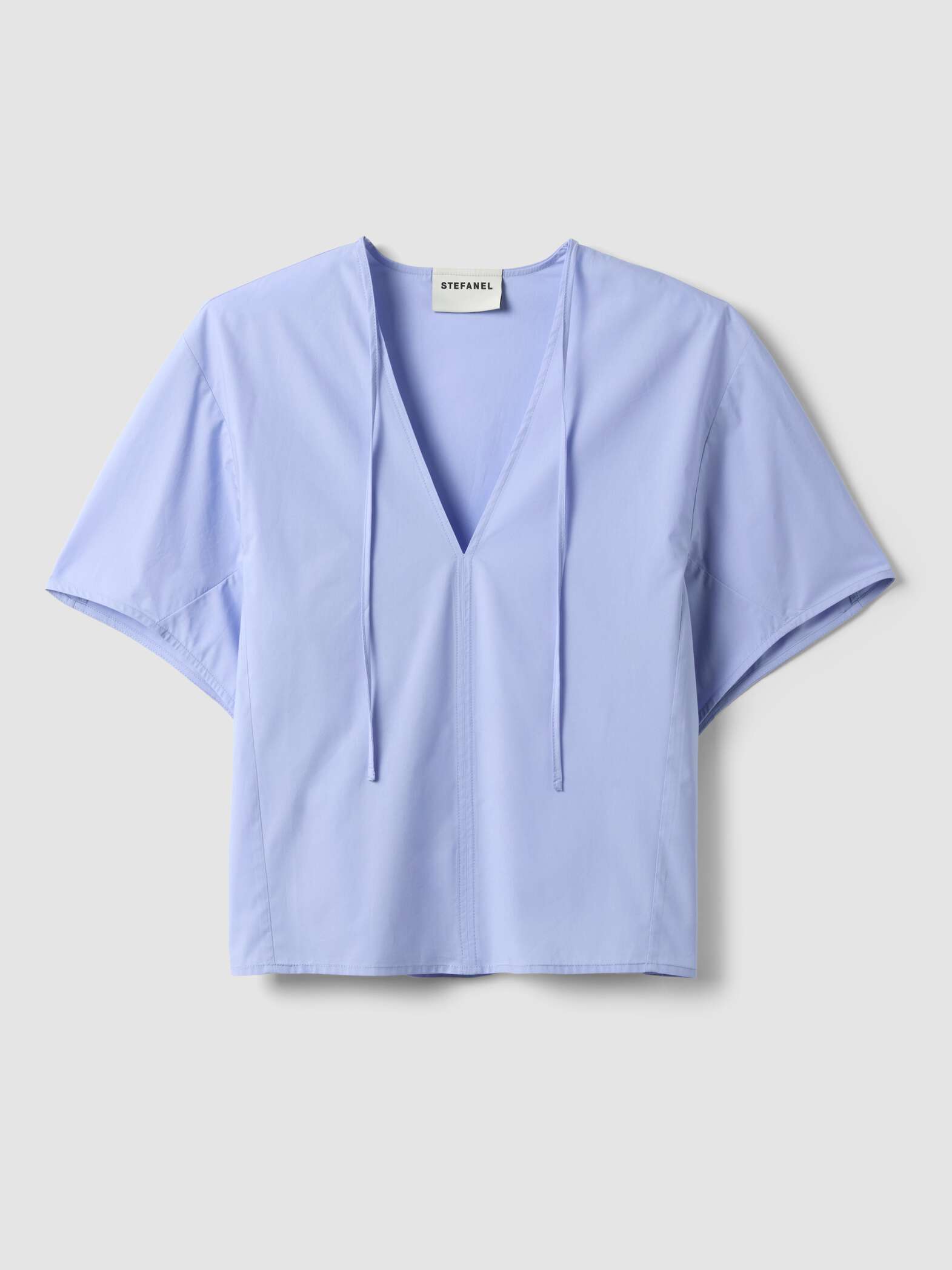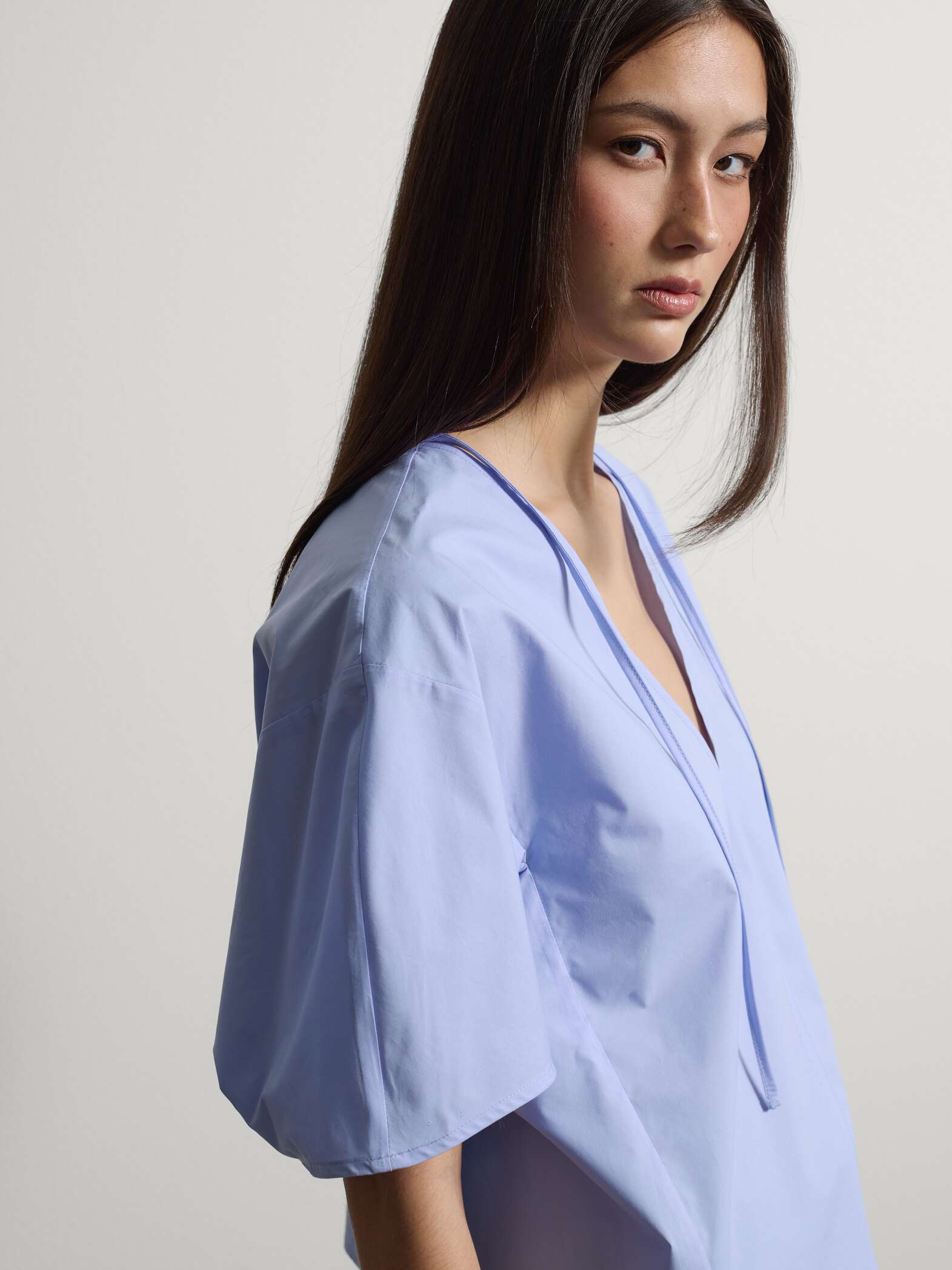 STEFANEL Regular-fit pure cotton blouse with V-neck Light blue