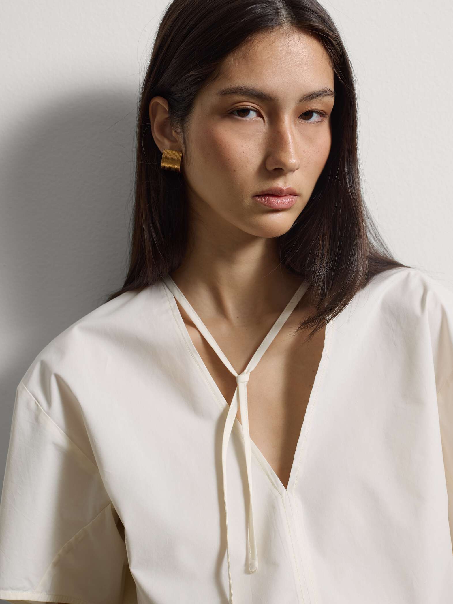 STEFANEL Regular-fit pure cotton blouse with V-neck White
