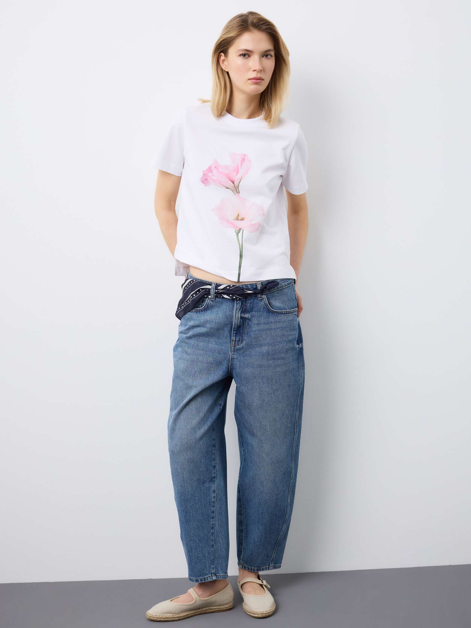 STEFANEL regular-fit pure cotton crew neck T-shirt with flowers White