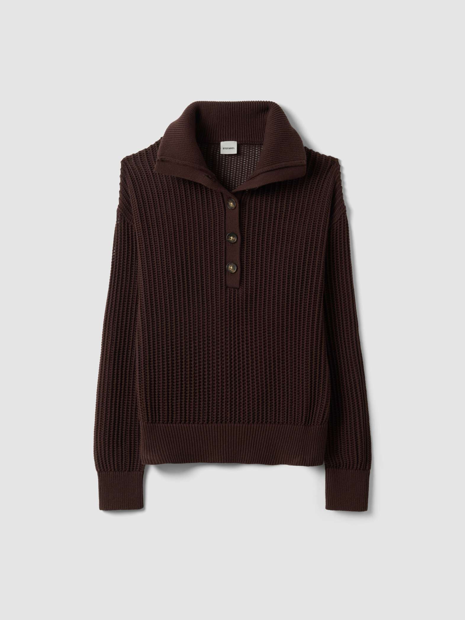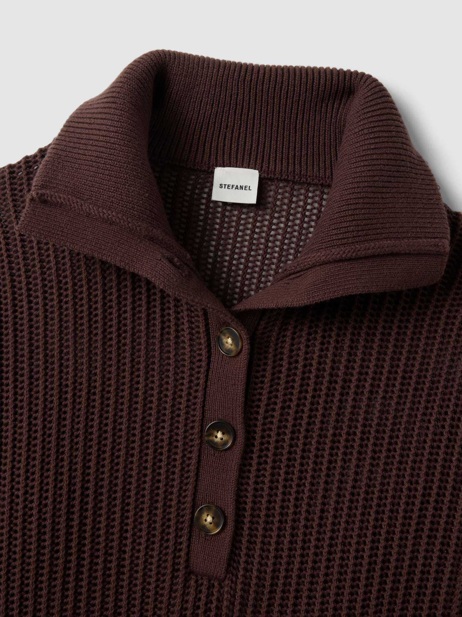 STEFANEL Regular fit pure cotton sweater with mesh texture Brown