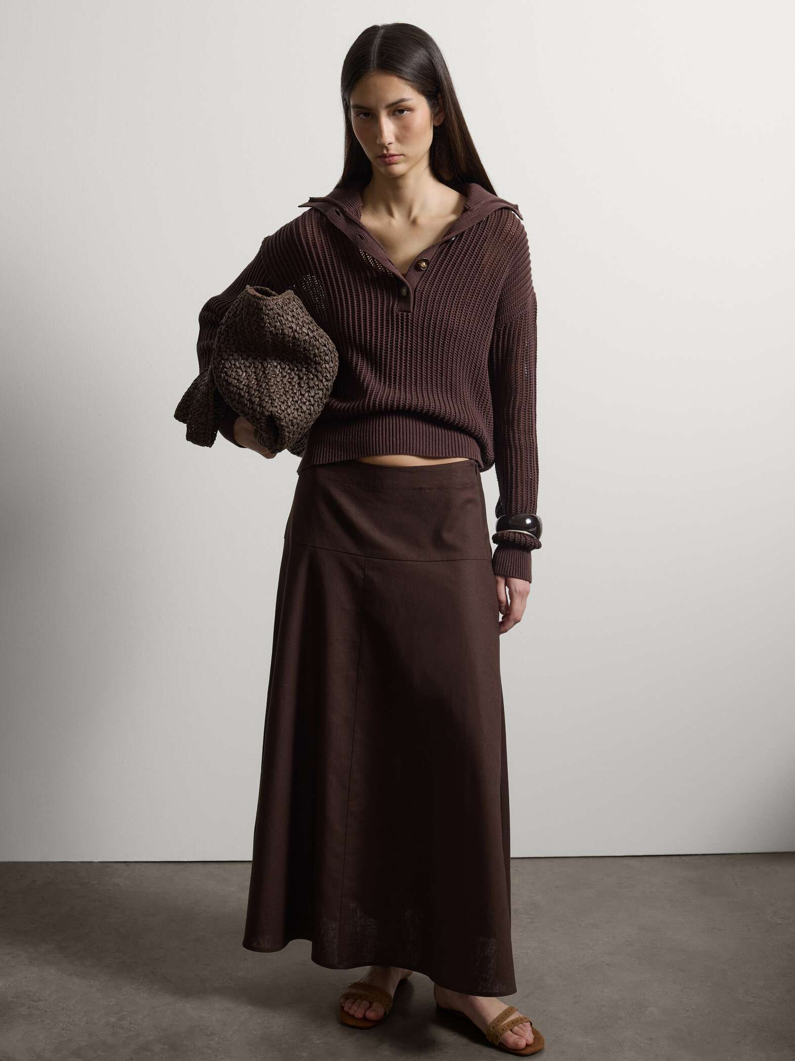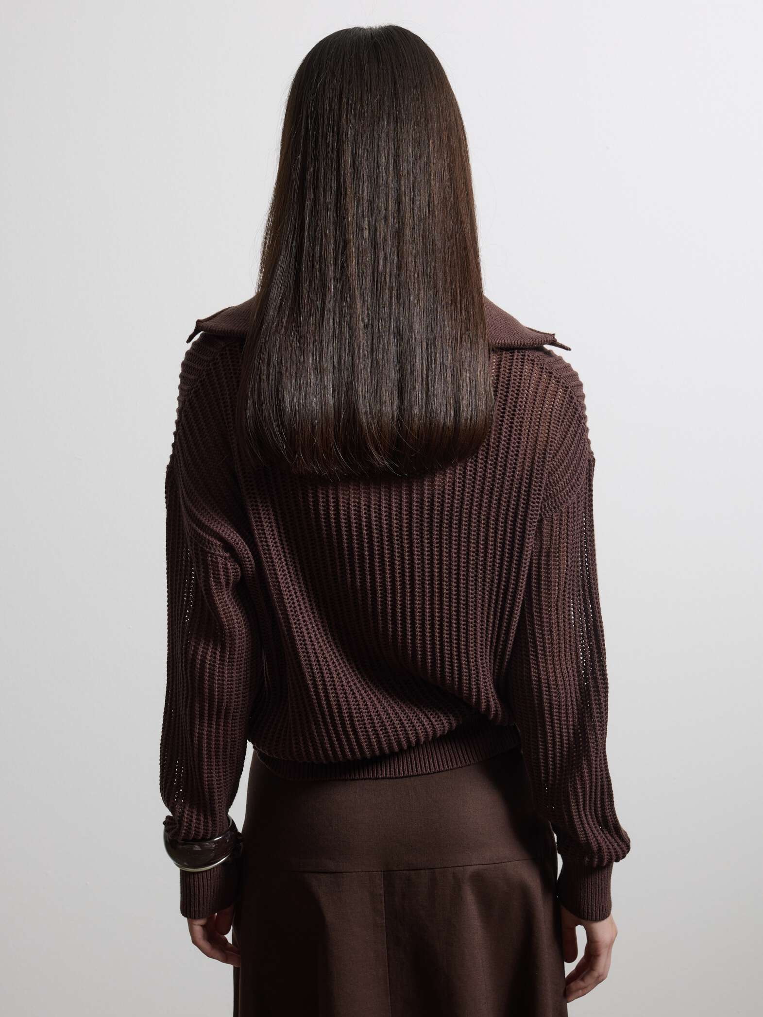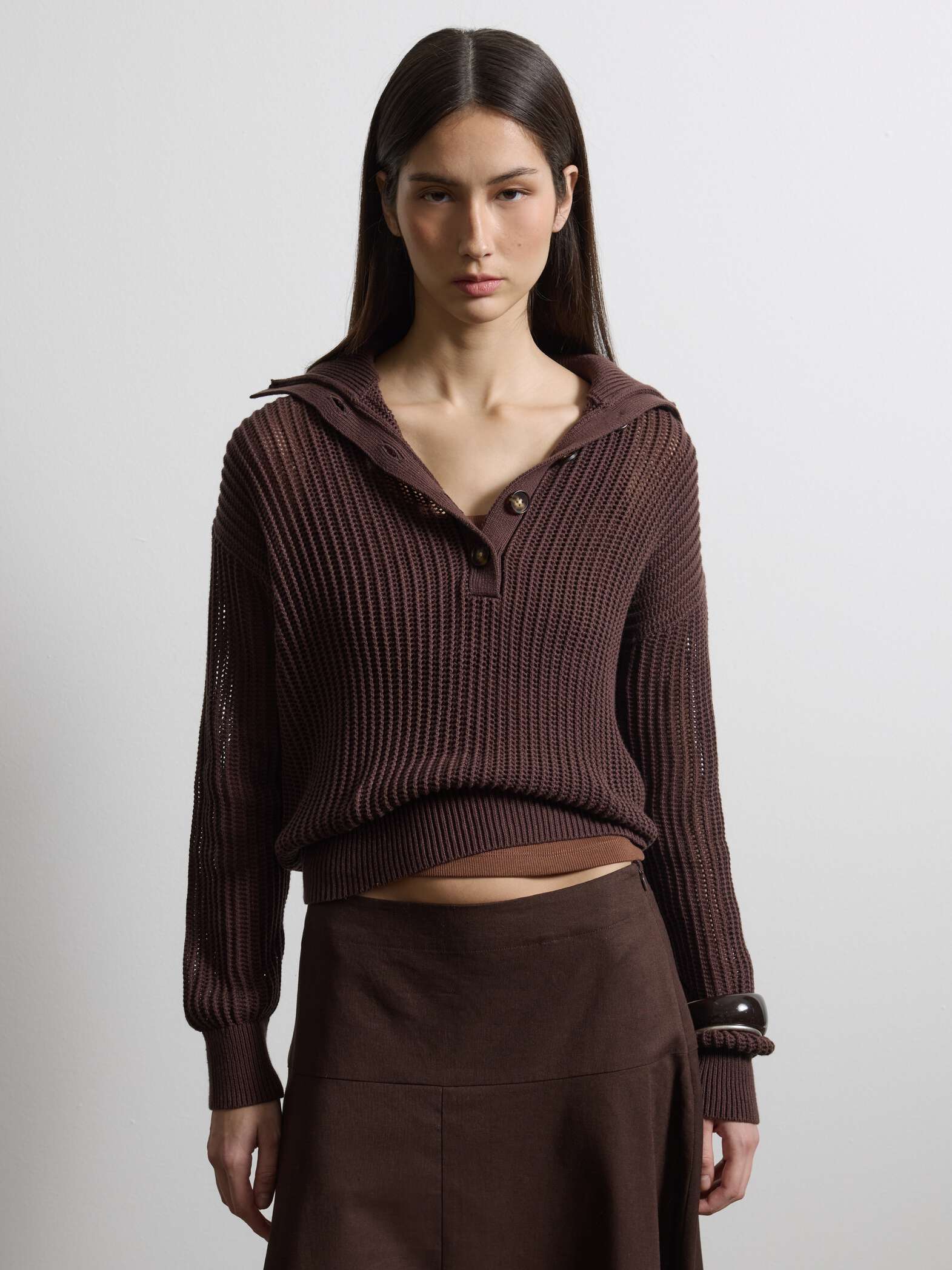 Το καφέ πουλόβερ από καθαρό βαμβάκι είναι ένα ιδανικό ένδυμα για την ανοιξιάτικη-καλοκαιρινή σεζόν.