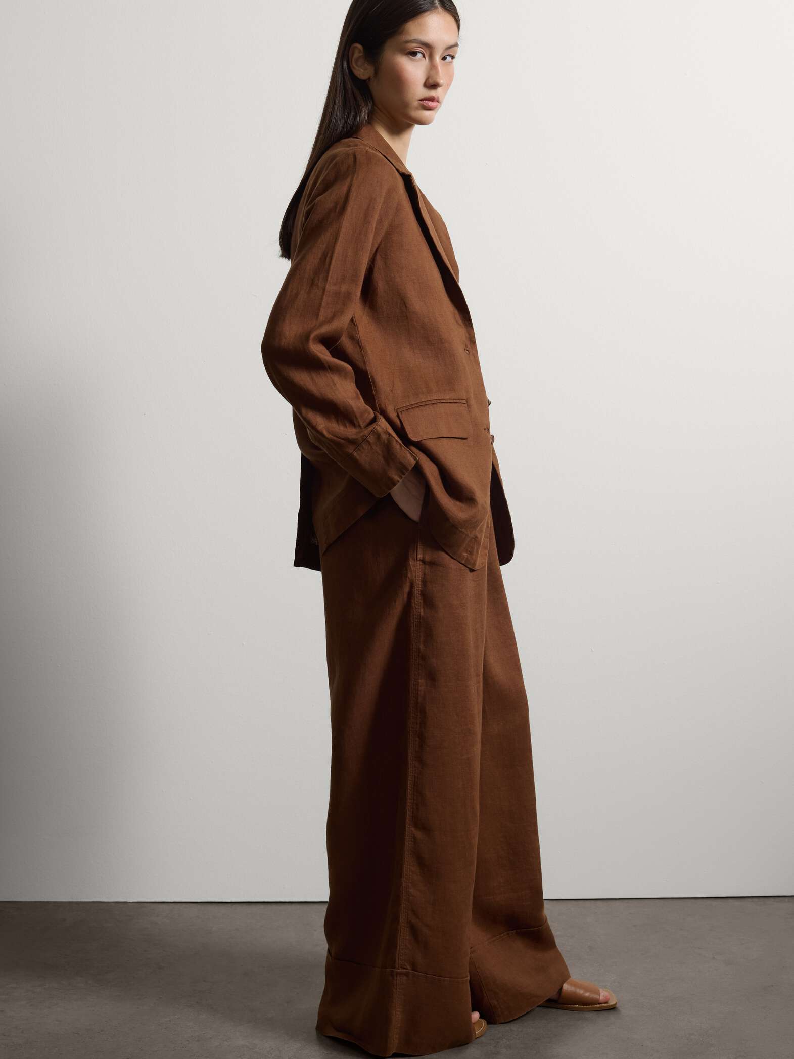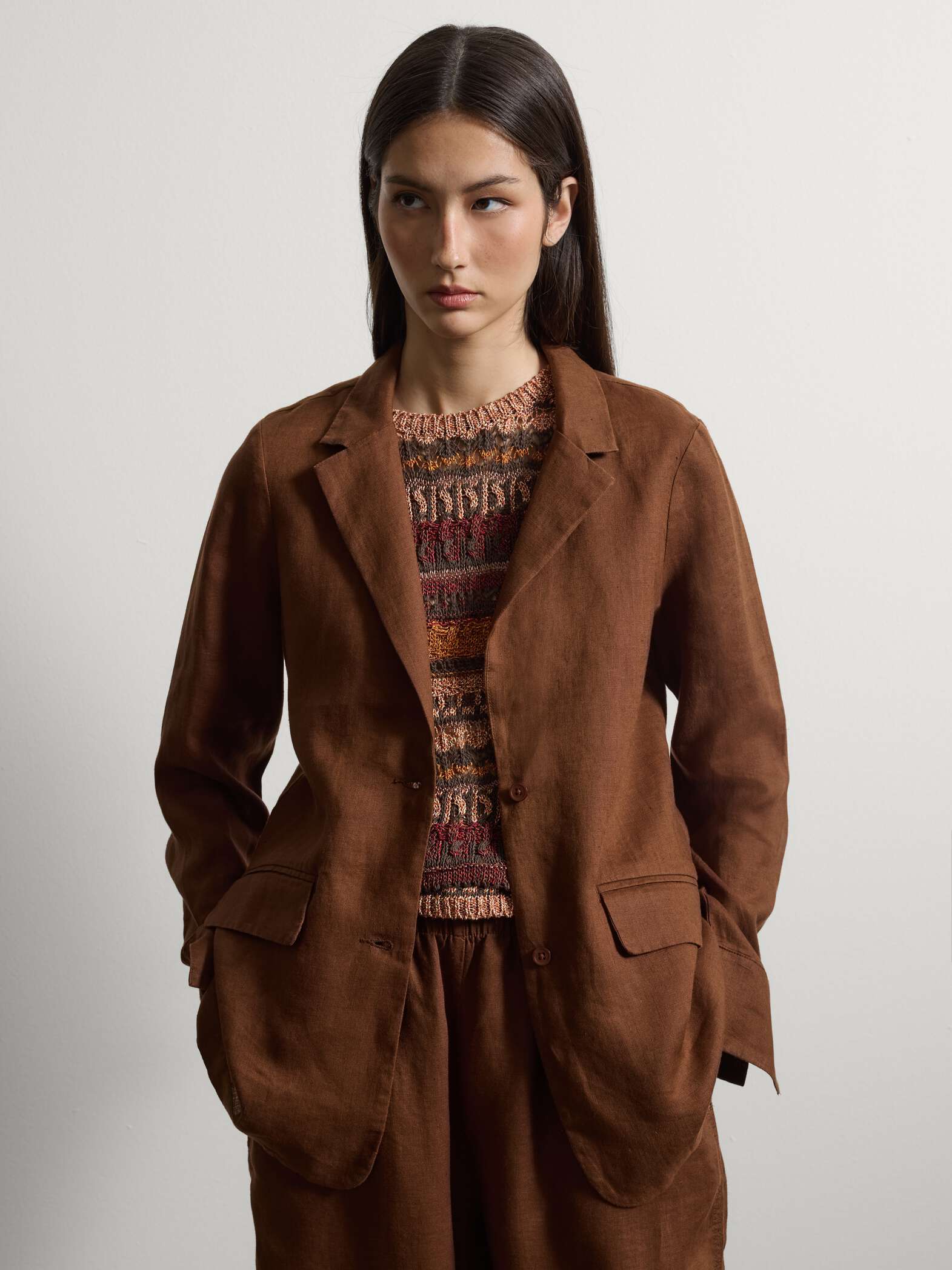 Ανακαλύψτε αυτό το κομψό καφέ σακάκι, κατασκευασμένο από καθαρό λινό για βέλτιστη άνεση κατά τη διάρκεια του καλοκαιριού.