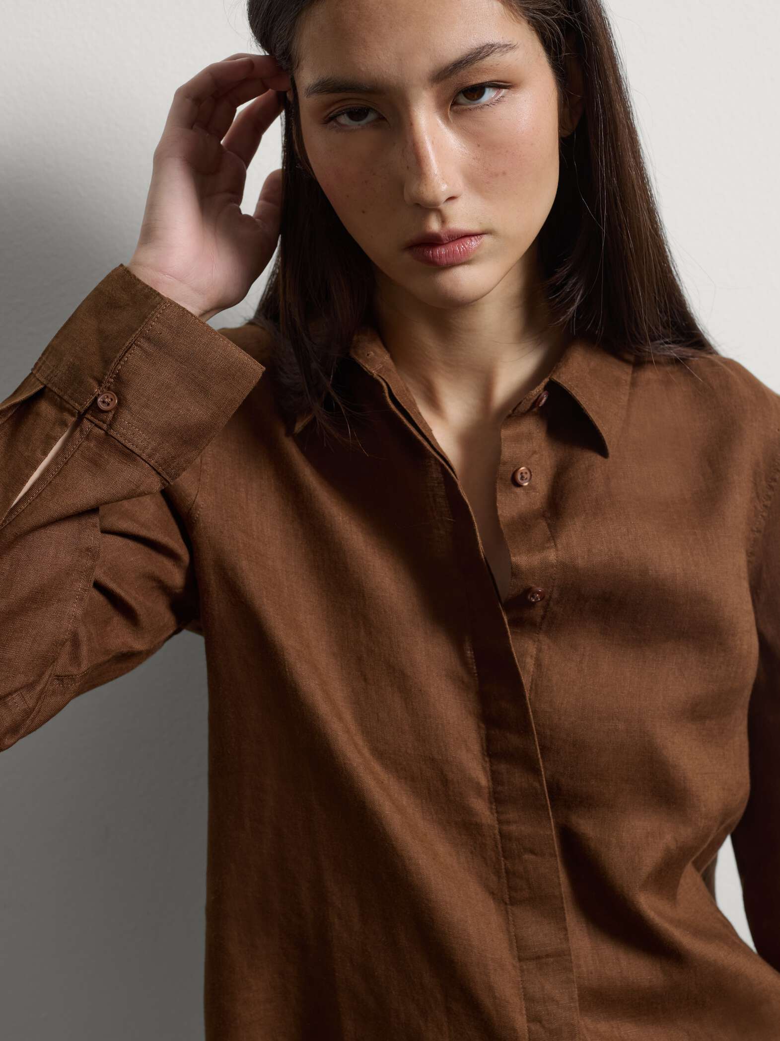 Αυτό το καφέ πουκάμισο από καθαρό λινό είναι το ιδανικό κομμάτι για ζεστό καιρό.