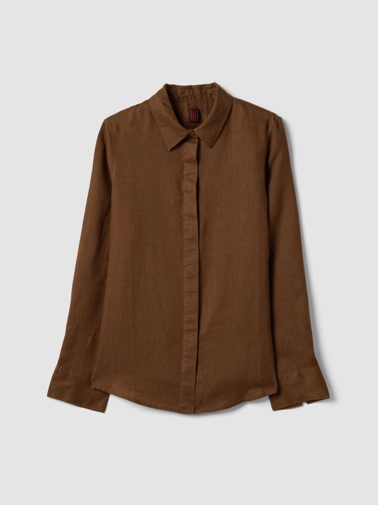 STEFANEL Regular fit pure linen long-sleeved shirt Brown