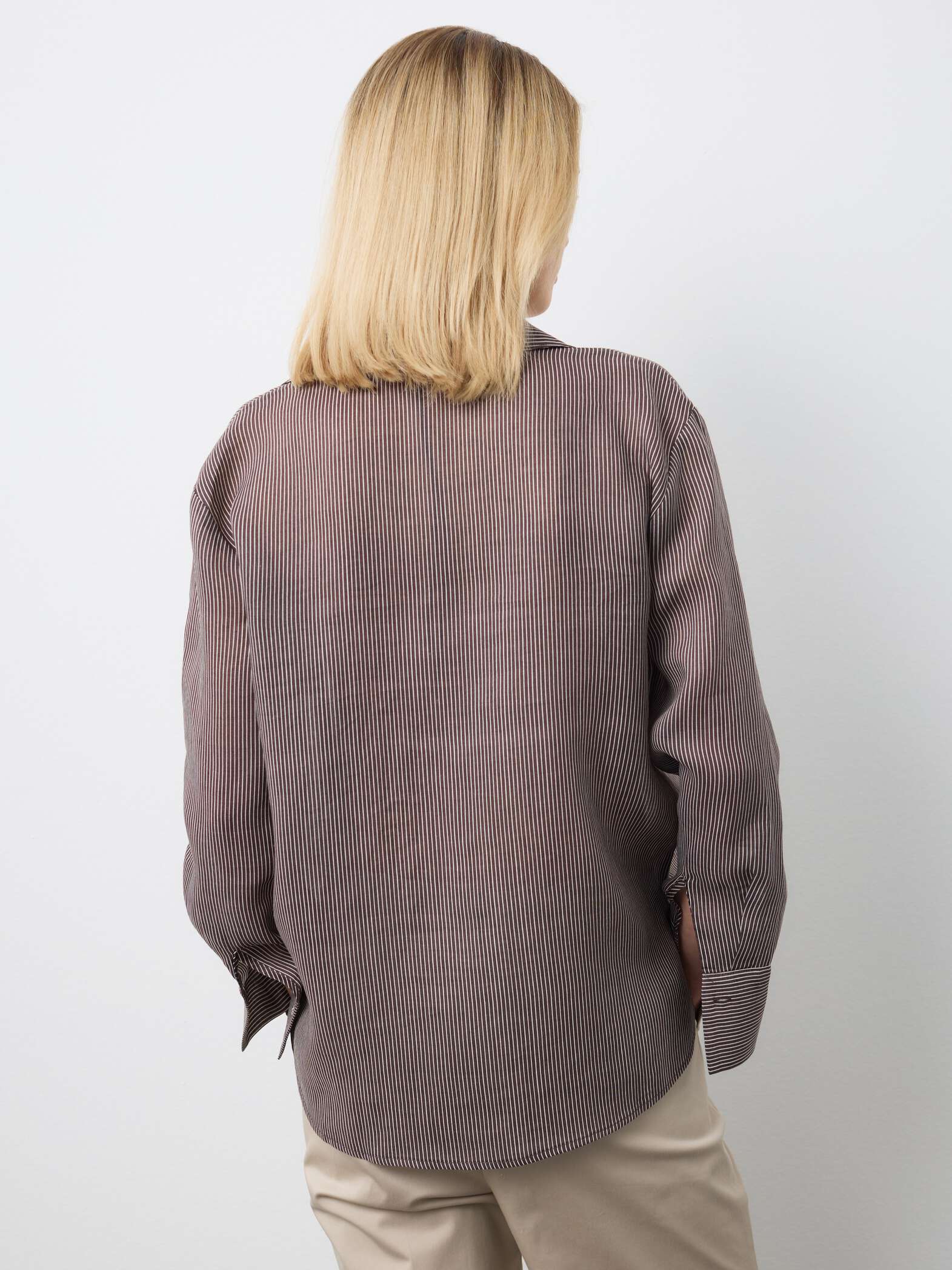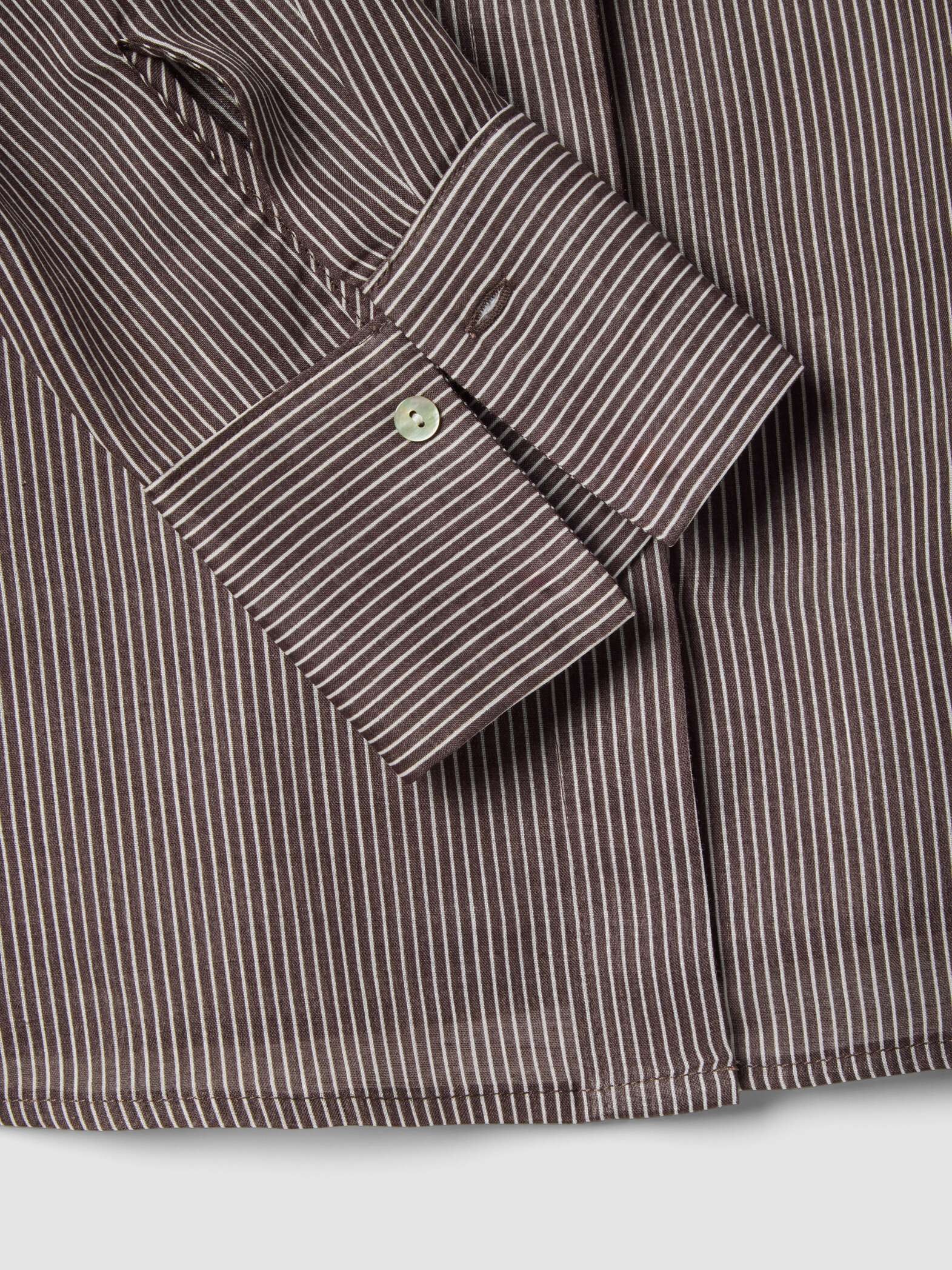 STEFANEL Regular fit striped pure ramie long-sleeved shirt Brown