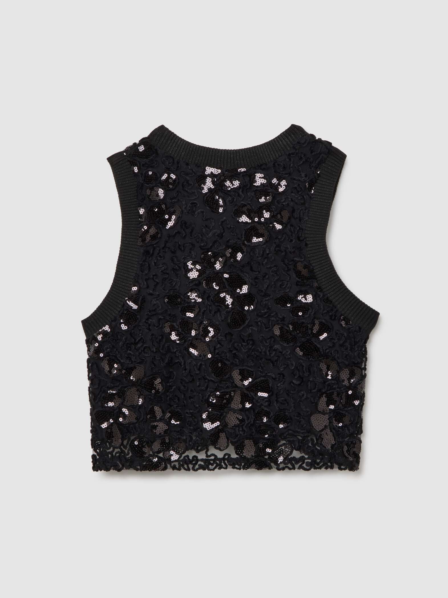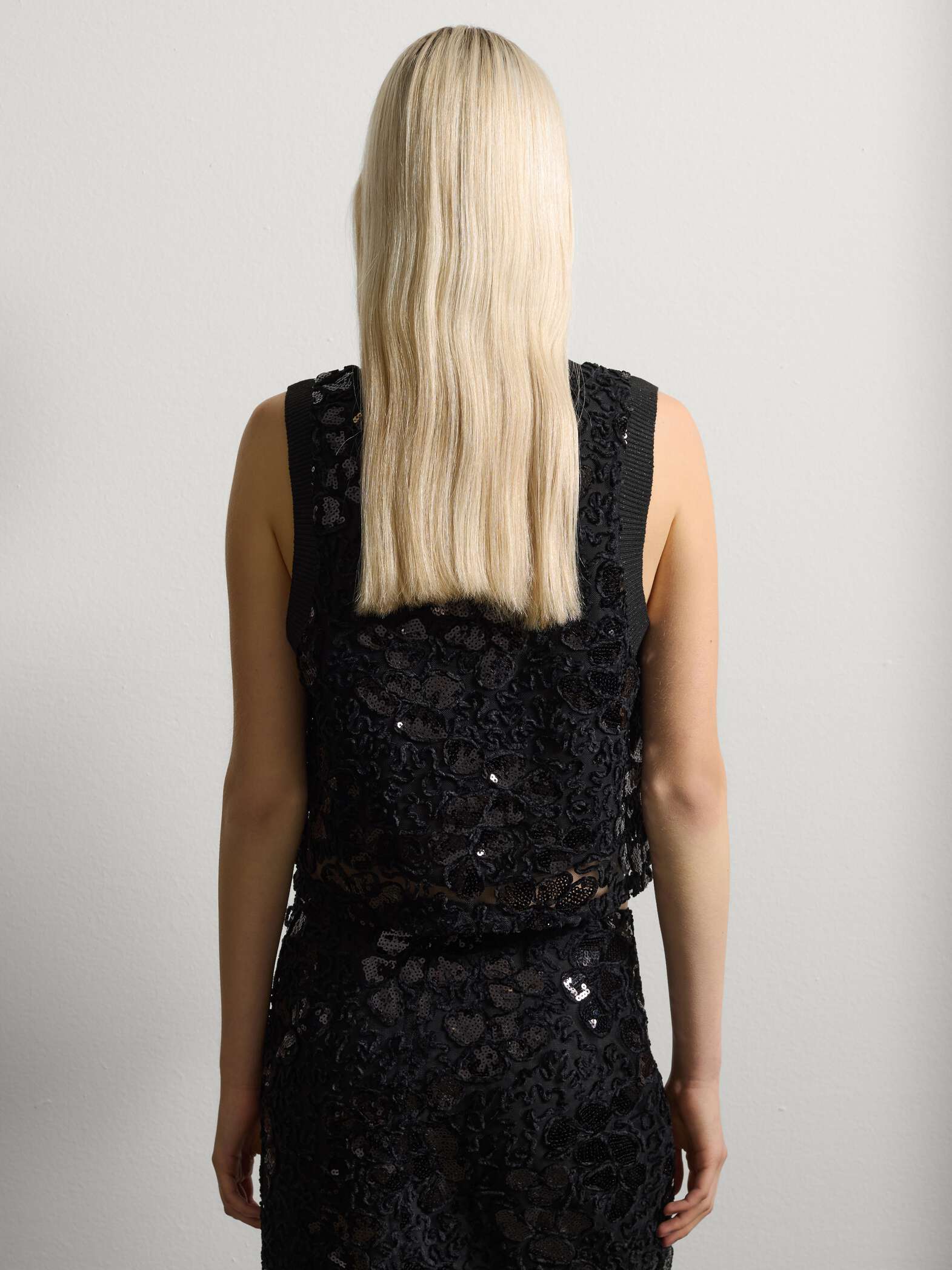 Κατασκευασμένο με εκλεπτυσμένες διαφανείς λεπτομέρειες και παγιέτες που ενισχύουν την κομψότητά του.