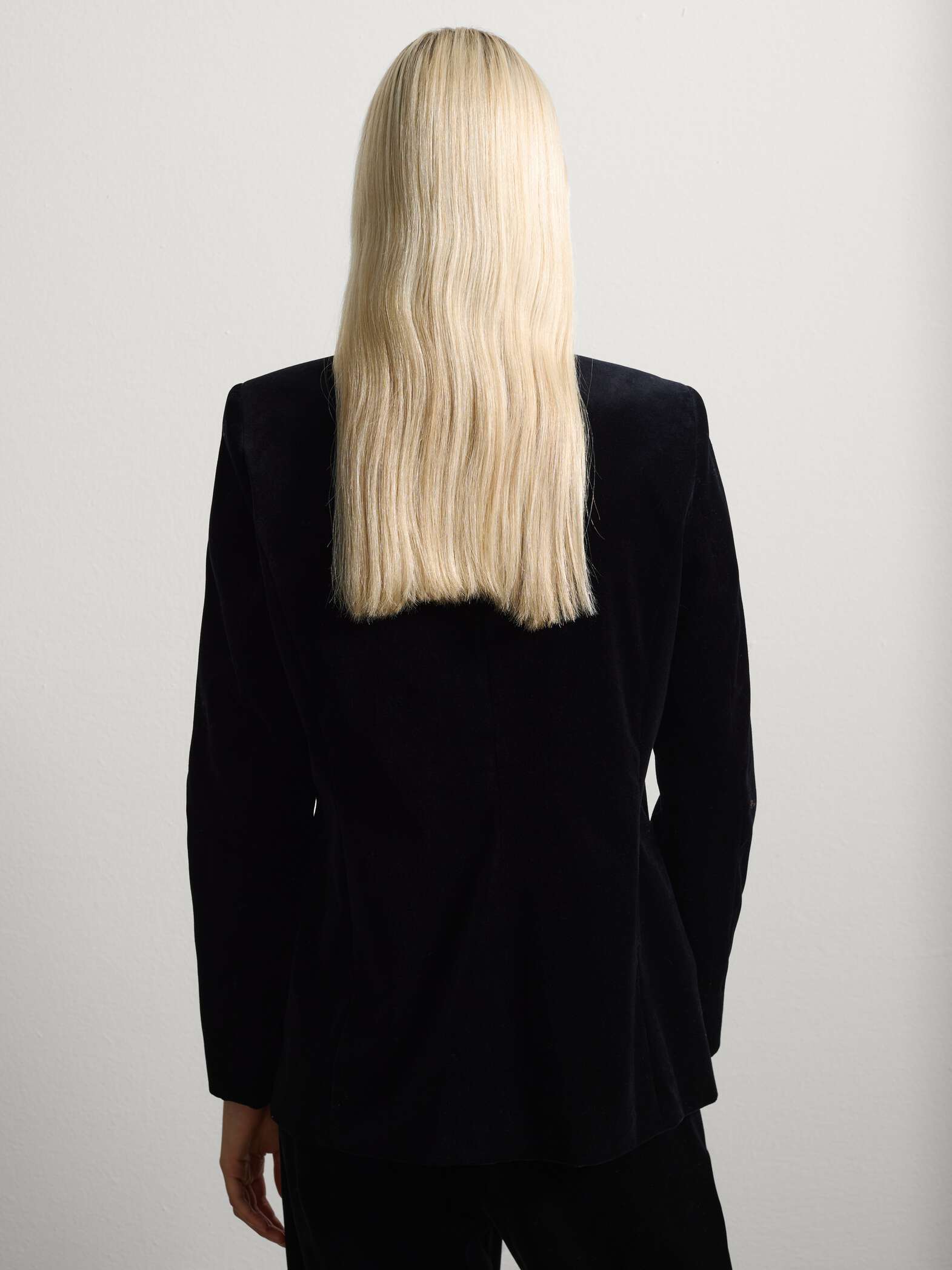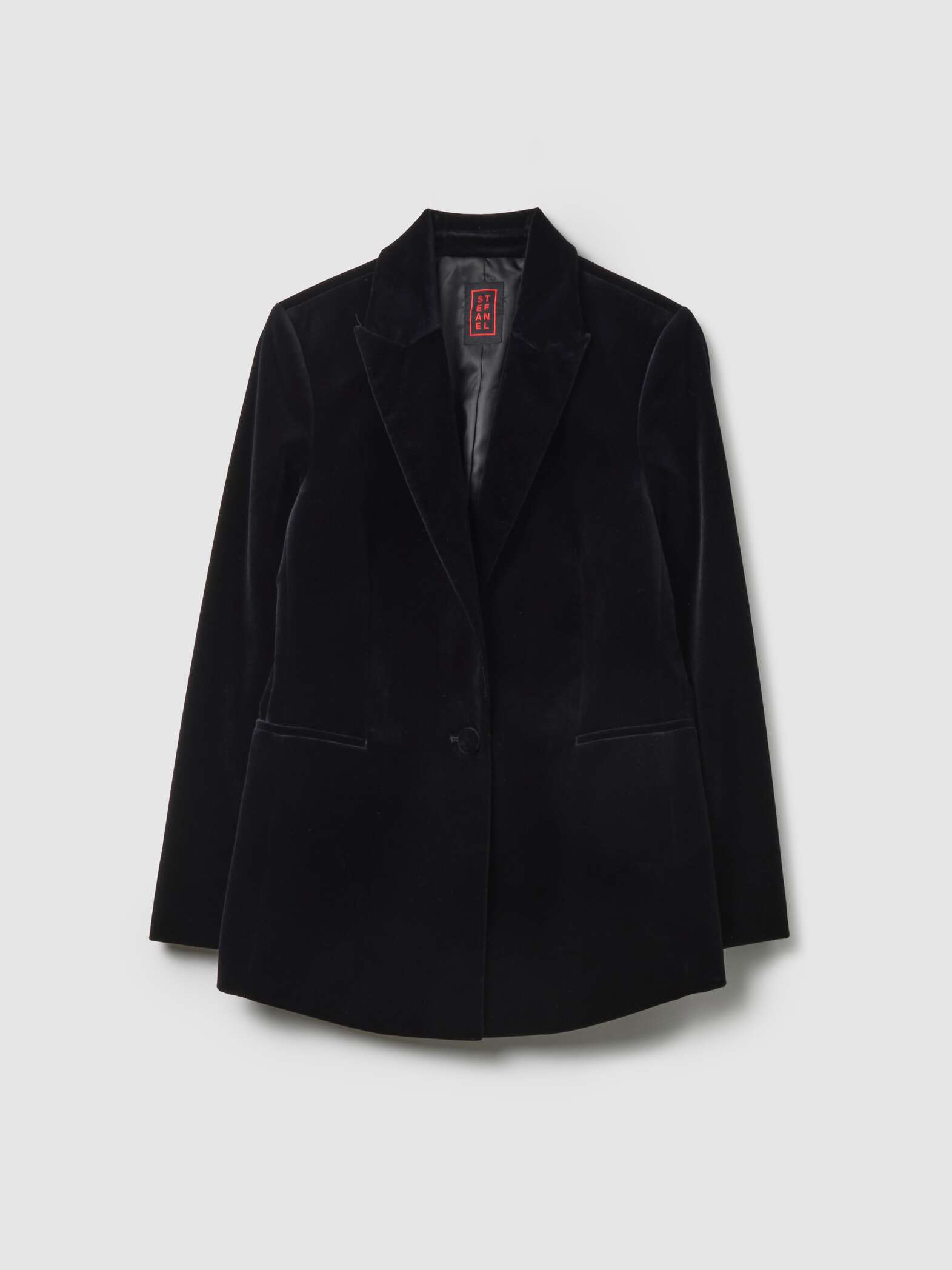 STEFANEL Regular fit velvet and pure cotton blazer Gunmetal black