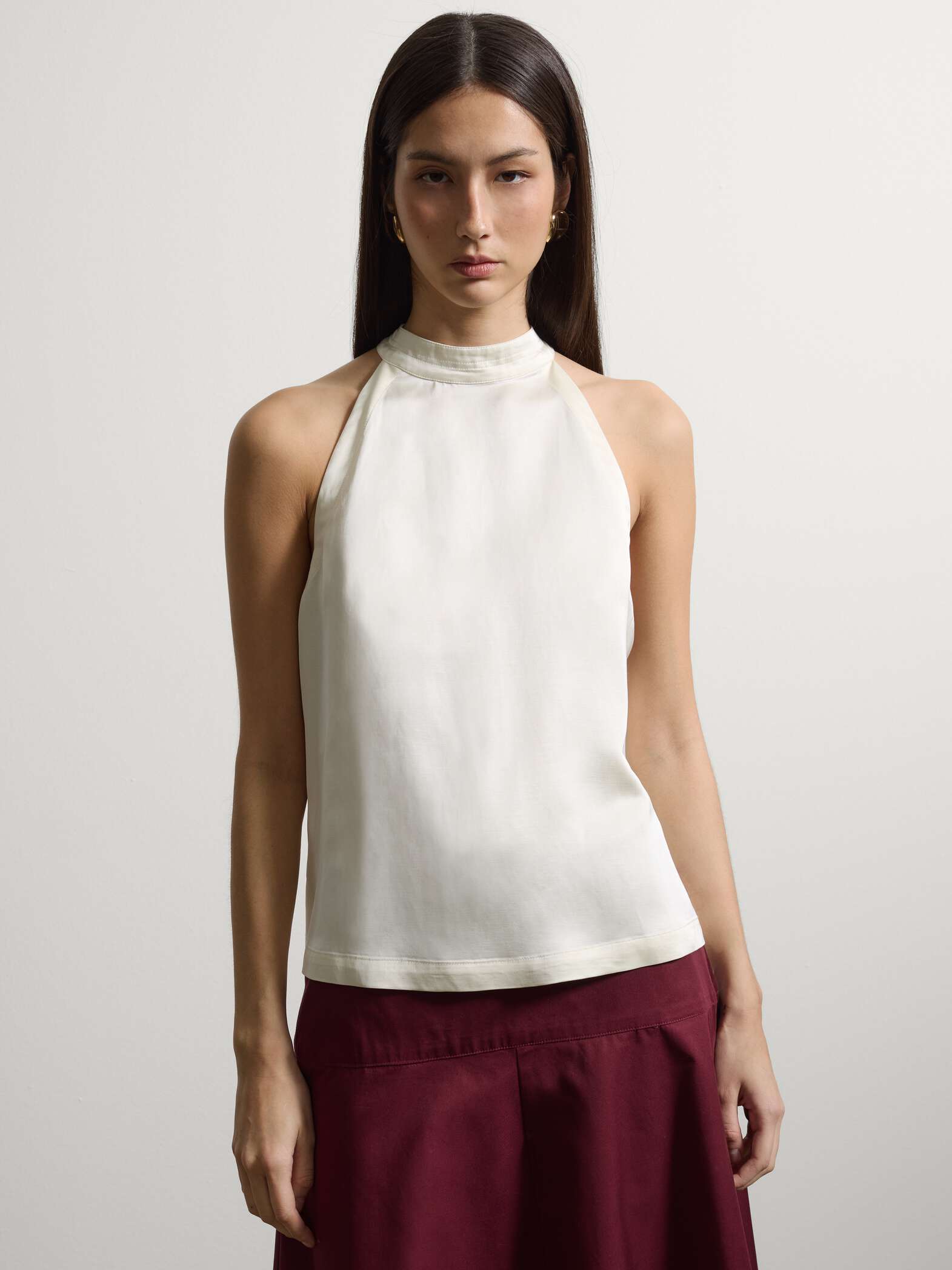 STEFANEL Regular fit viscose blend sleeveless blouse White