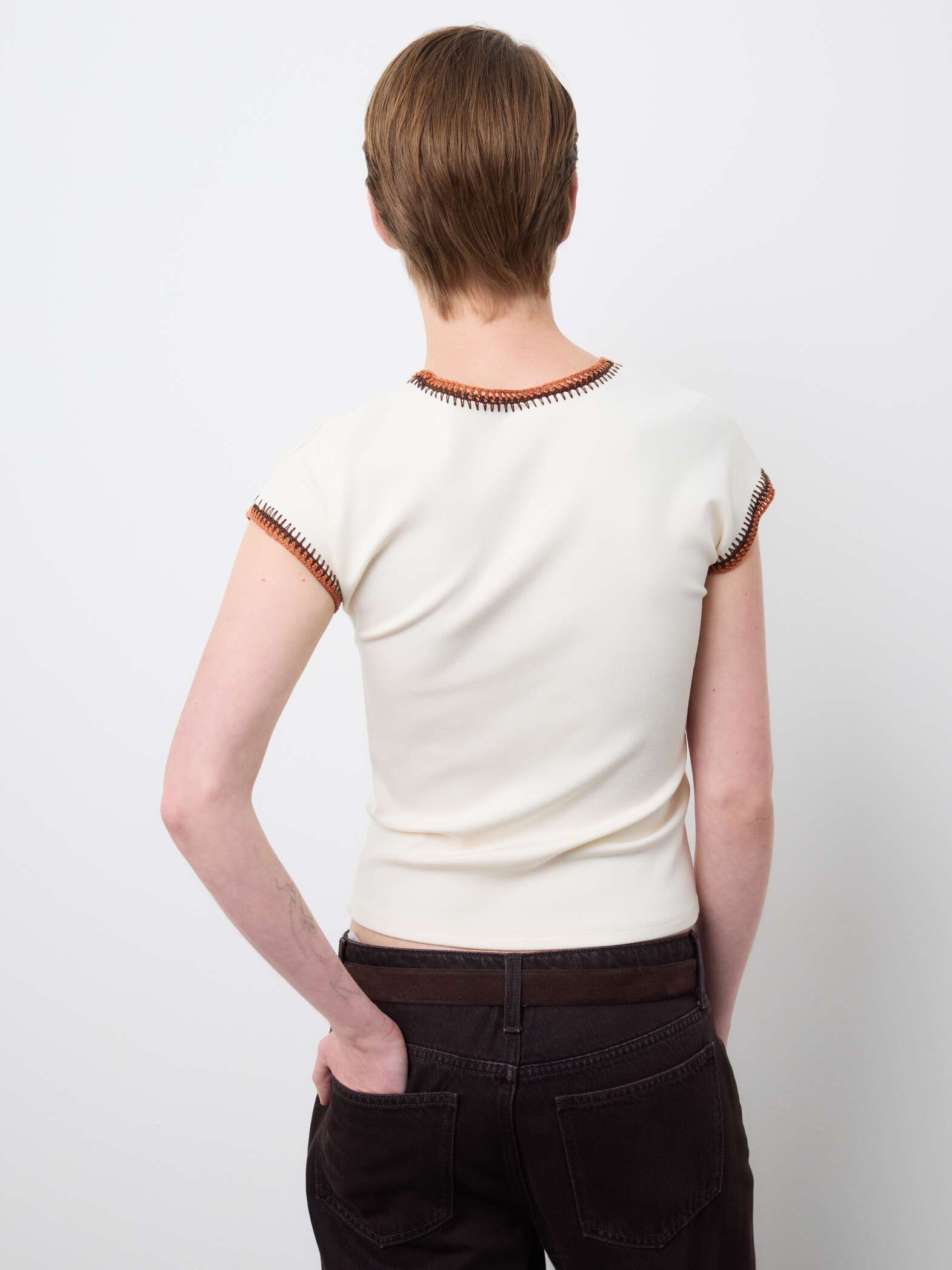 Τα διακοσμητικά στο γιακά και τα μανίκια, που ενισχύονται από ορατές ραφές, προσθέτουν μια πινελιά μοντέρνου σχεδιασμού.