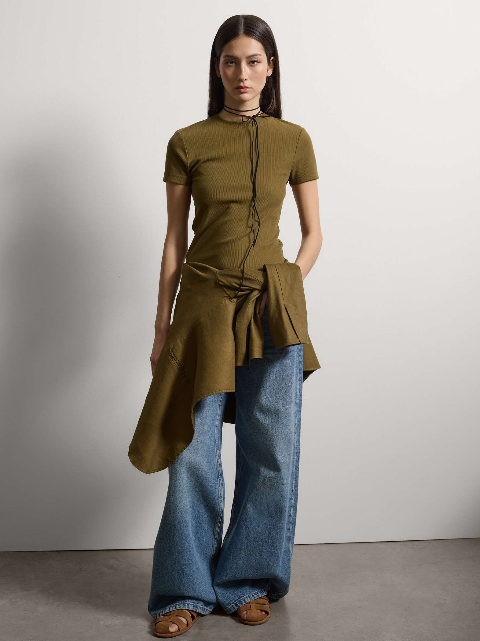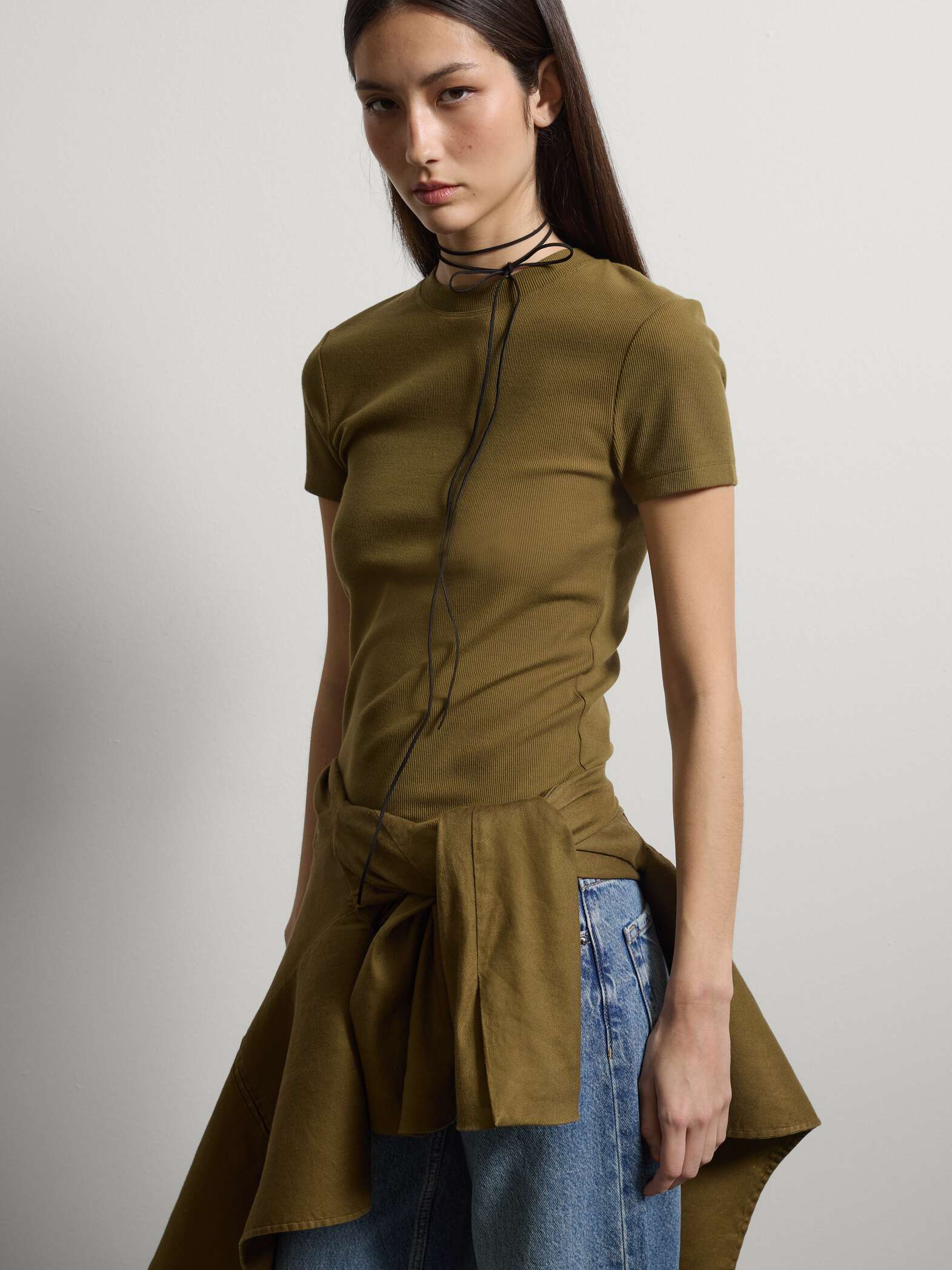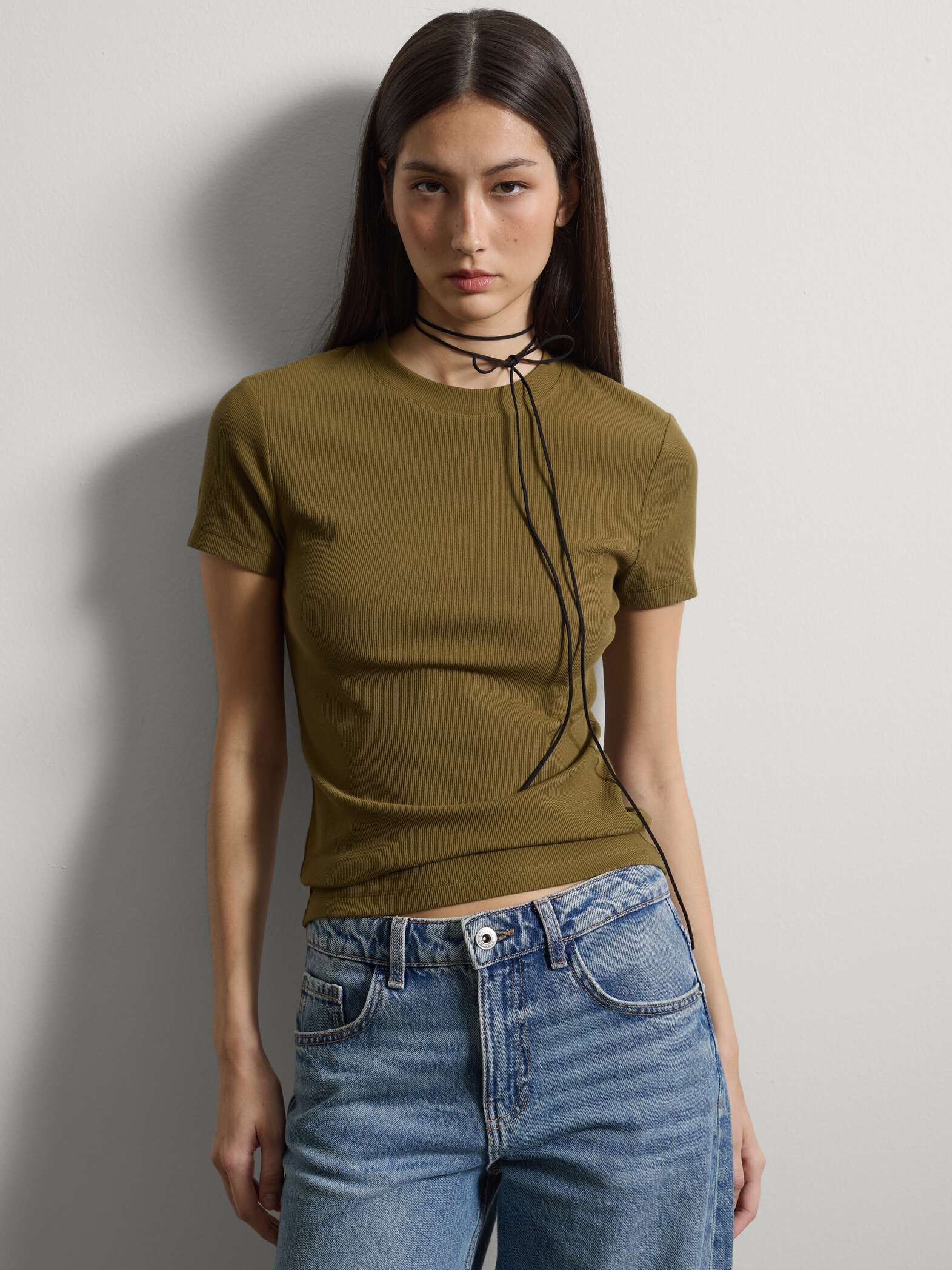 STEFANEL Short-sleeve fitted t-shirt in stretch cotton, Khaki